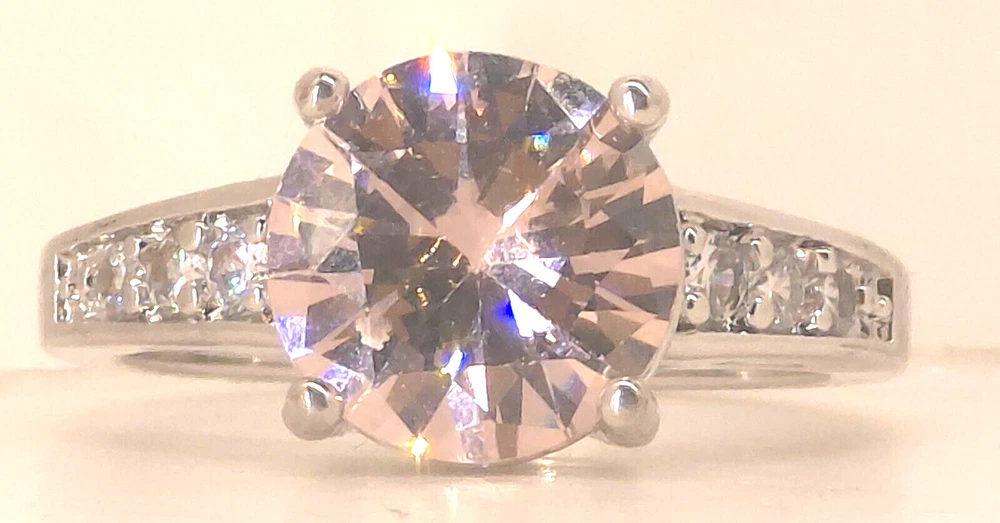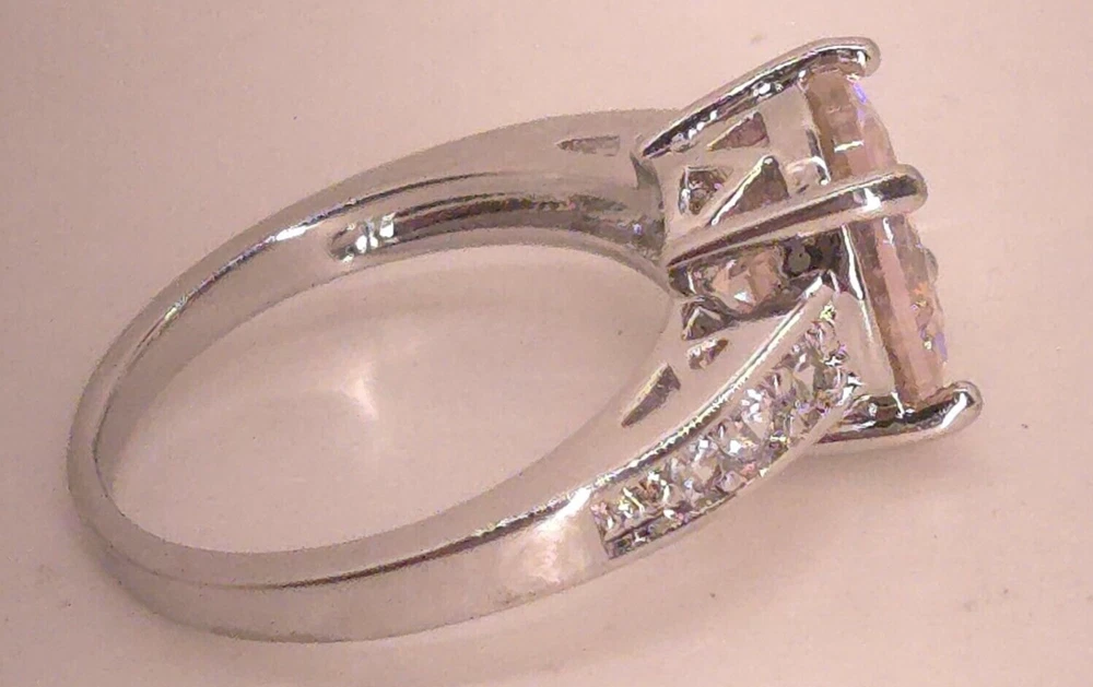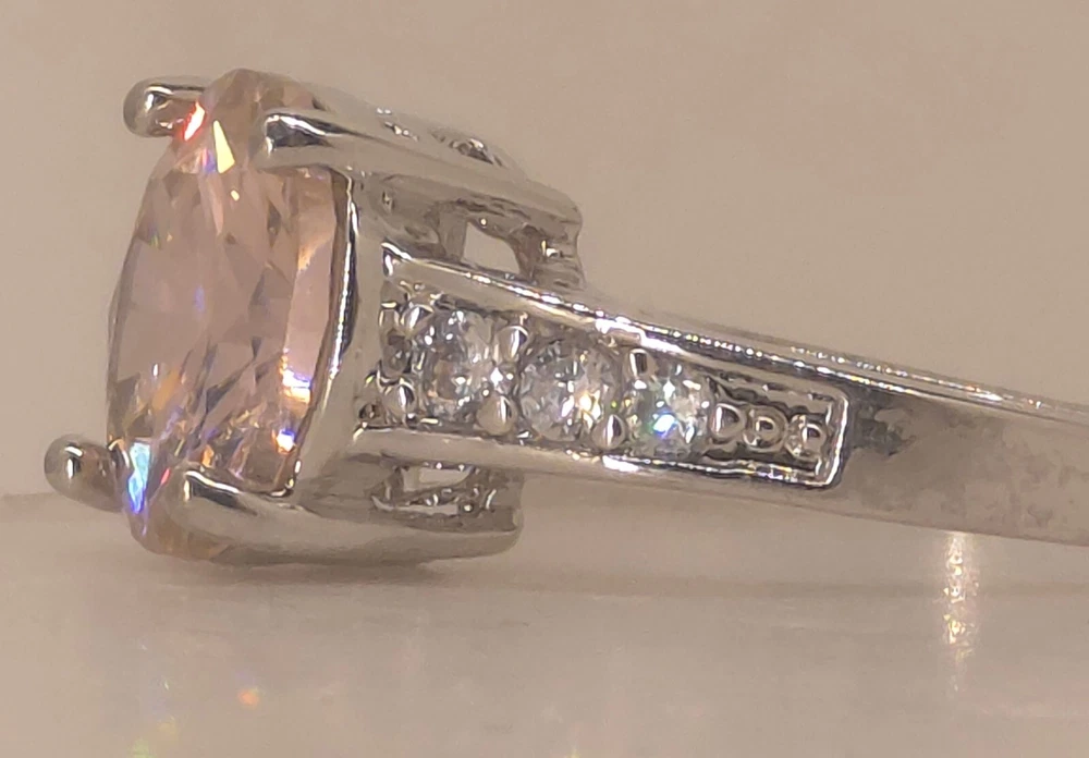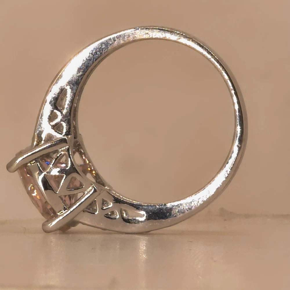 This is a stunning cocktail ring featuring a round pink Cubic Zirconia main stone with a width of 9.7mm. The ring is silver plated and set in a prong setting style. It is designed for special occasions like engagements, weddings, anniversaries, birthdays, and more. With a band width of 2mm and a size 7 fit, this ring exudes beauty, art, and love. Perfect for anyone who loves pink and wants to make a statement.