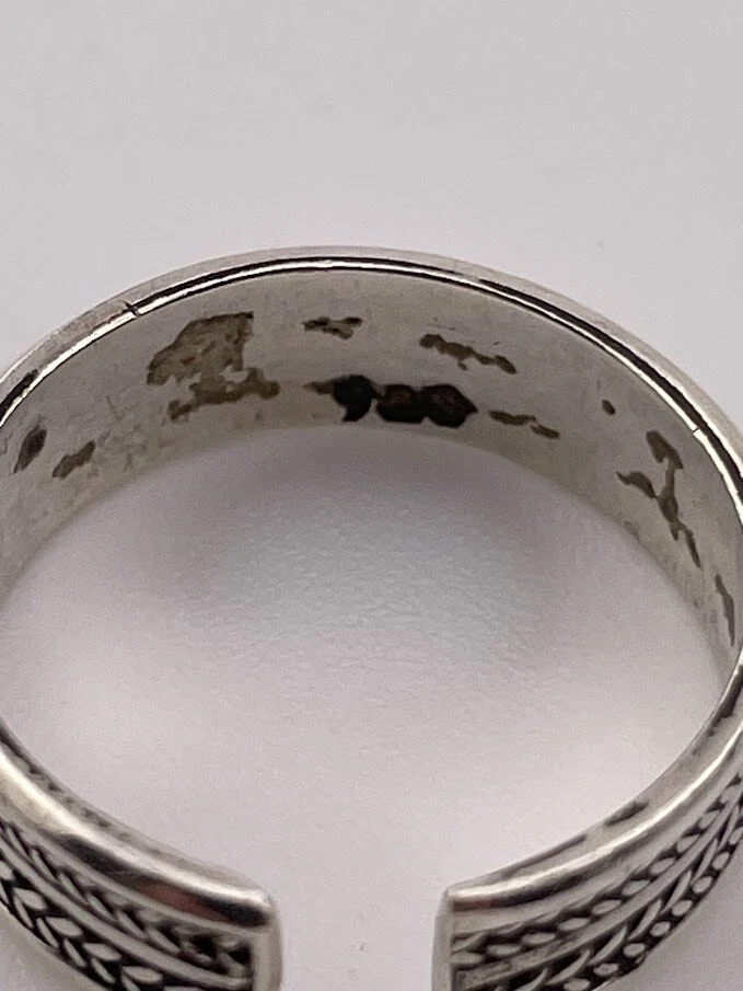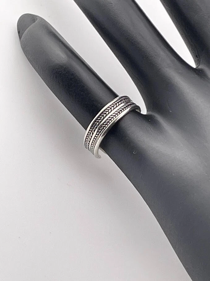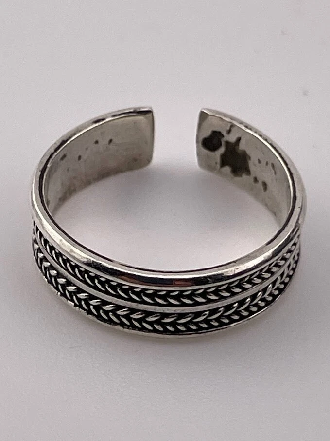 925 STERLING SILVER DOUBLE BRAID BAND RING SIZE 6 ADJUSTS PINKY TOE THUMB 2855 ****************************** Thank you for your interest in our jewelry. We?d like to introduce ourselves. We are just a retired couple who love matching our customers with great jewelry. We?re not professional jewelers. To have the best shopping experience we like to recommend the following: Please measure your hand, wrist, finger or neck to ensure the best fit. We can use your measurements to help with sizing. Please ask all the questions you want. We know some stuff and, if we don?t, we?ll do the research. We like to learn too. More Stuff: If an item is described as ?gold over 925 sterling silver? this means it is gold vermeil. Vermeil is the process by which a layer of gold (usually 14k or 18k) is bonded to sterling silver. We only clean with gentle soap and warm water to avoid damage. The items we sell may be new or pre-owned and may have normal wear, slight damage, and/or tarnish. We make every effort to ensure the items we sell are as described. This includes testing to confirm metal purity if the item isn?t marked, and testing for gemstone identity. We try to put measurements in the jewelry description and include a photo of each piece with a U.S. quarter (25mm).