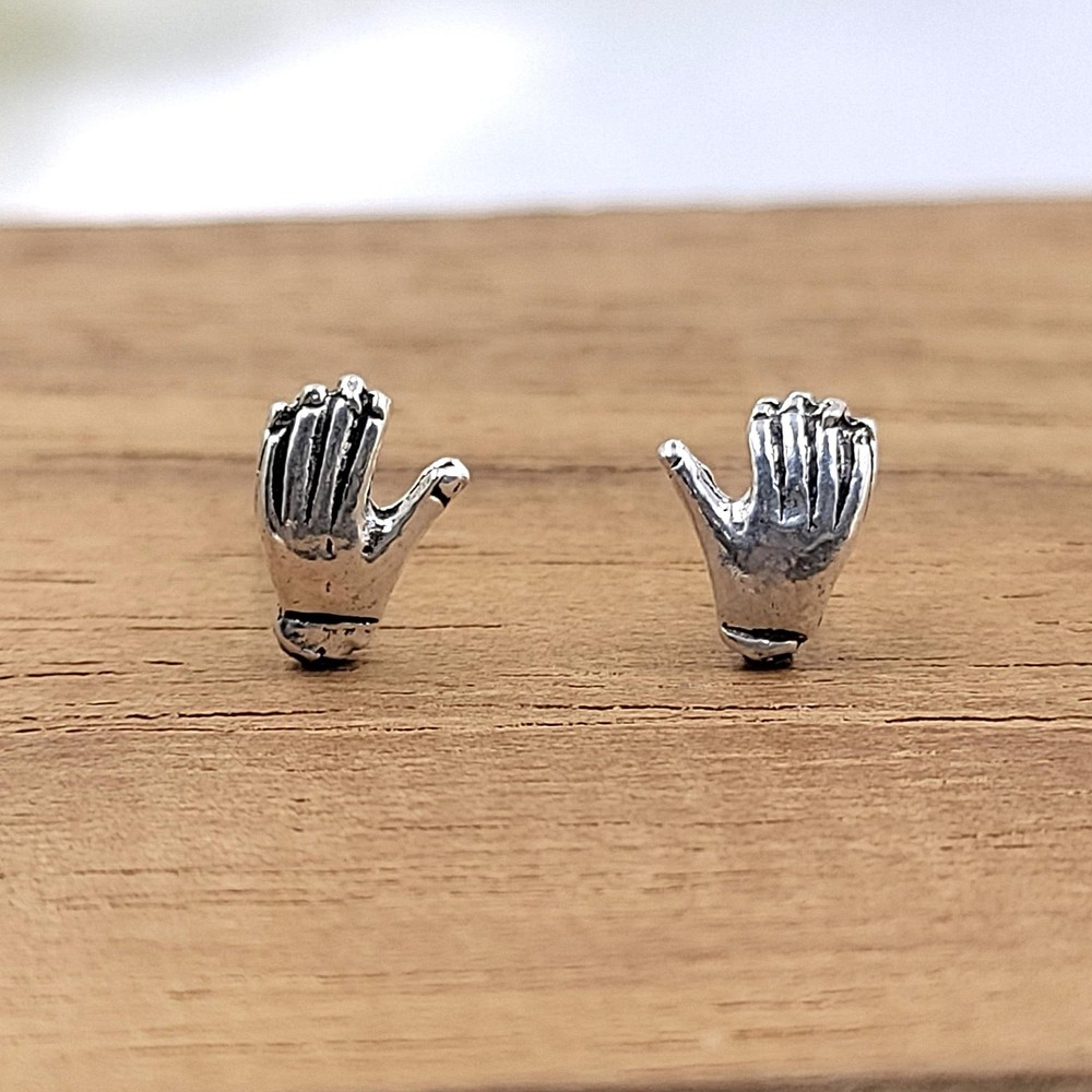 925 Silver Baby Hand Sign Studs Jewelry Tiny Hand Charm Earrings