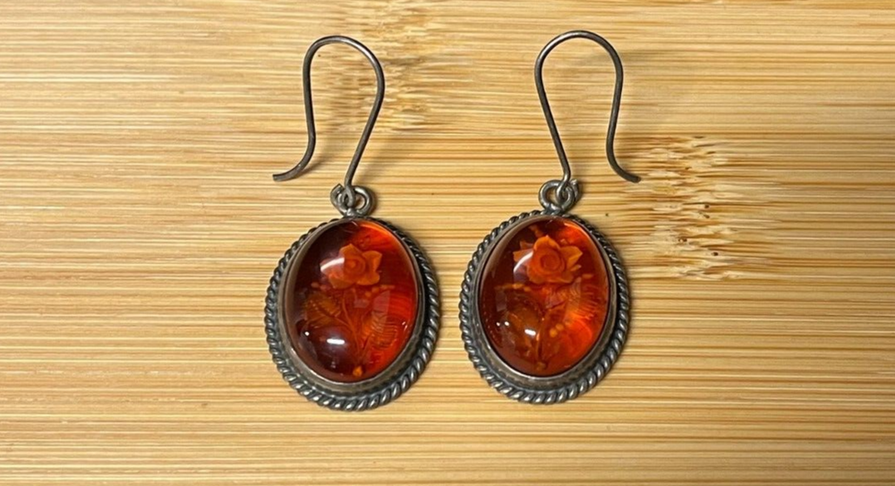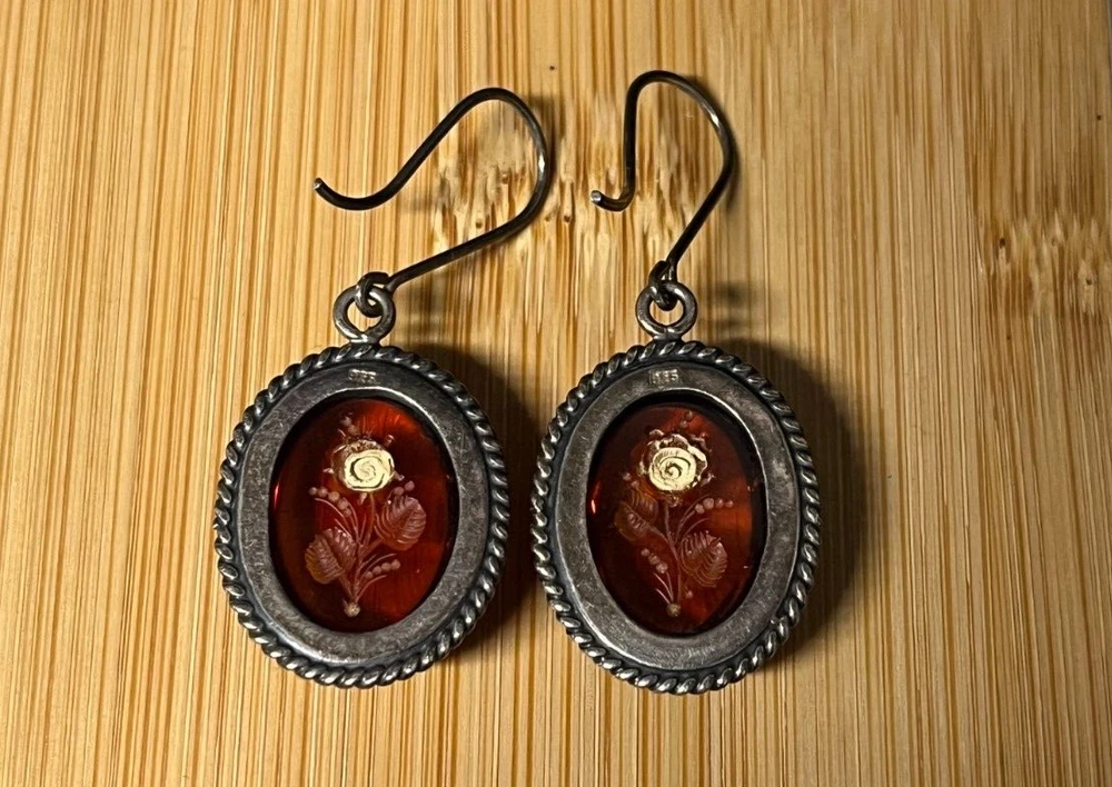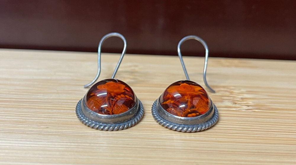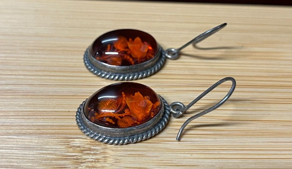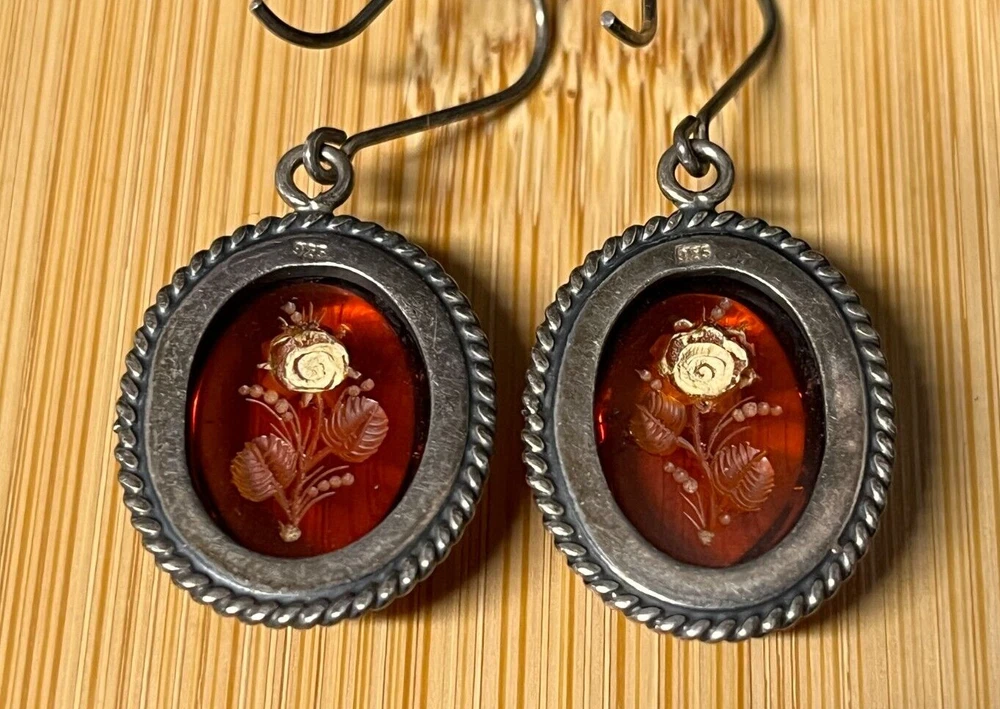 Vtg 925 Sterling Silver Intaglio Carved Rose Oval Baltic Amber Dangle Drop Earrings Weight: 10 grams Length: 1.75 inches Vintage 925 Sterling Silver Intaglio Carved Rose Oval Baltic Amber Dangle Drop Earrings are in lovely pre-owned condition. Stamped 925- can be seen in photos. Please see photos, as they are part of the description. Please reach out with any questions, I will get back to you at my earliest convenience.