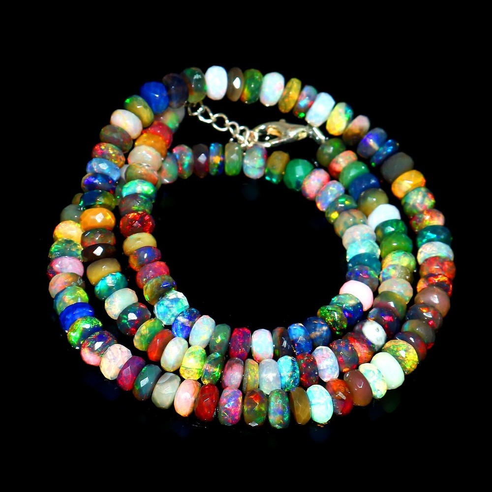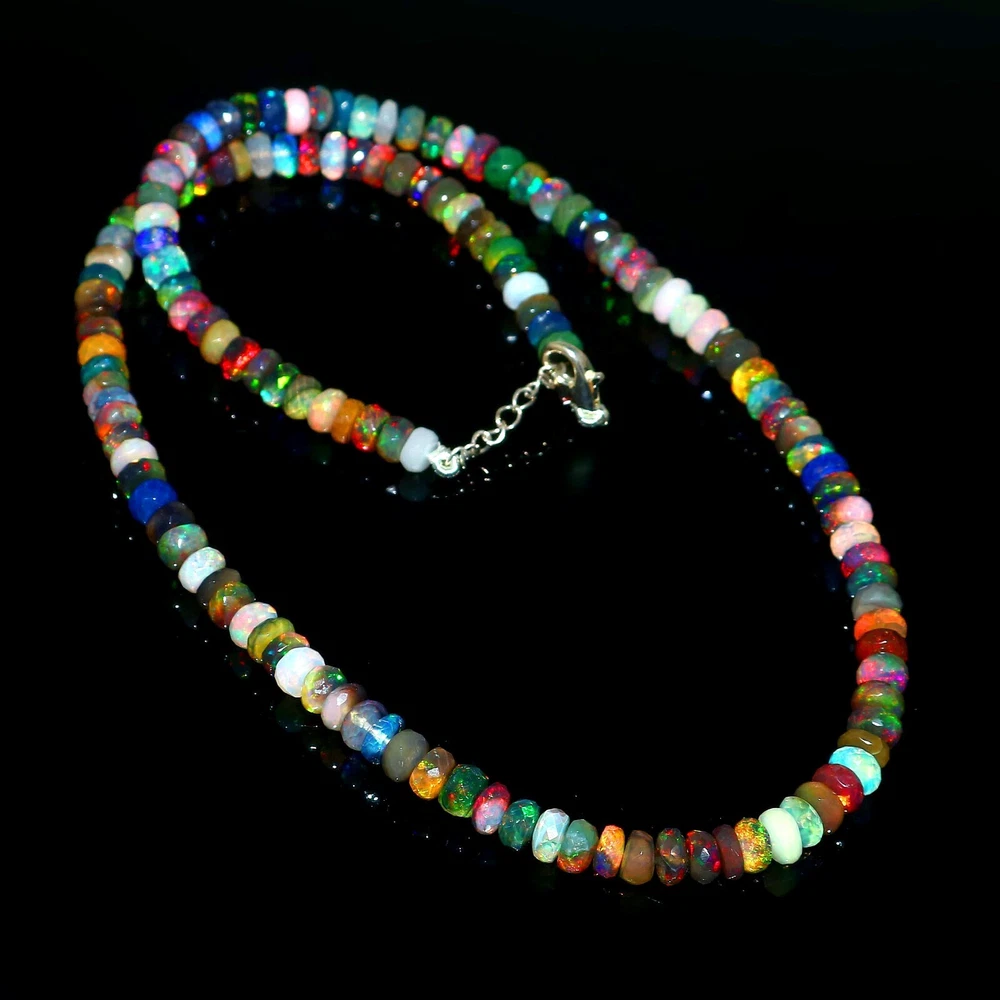 925 Silver Genuine Ethiopian Opal Beads Necklace Valentine Day Gift Jewelry 1019