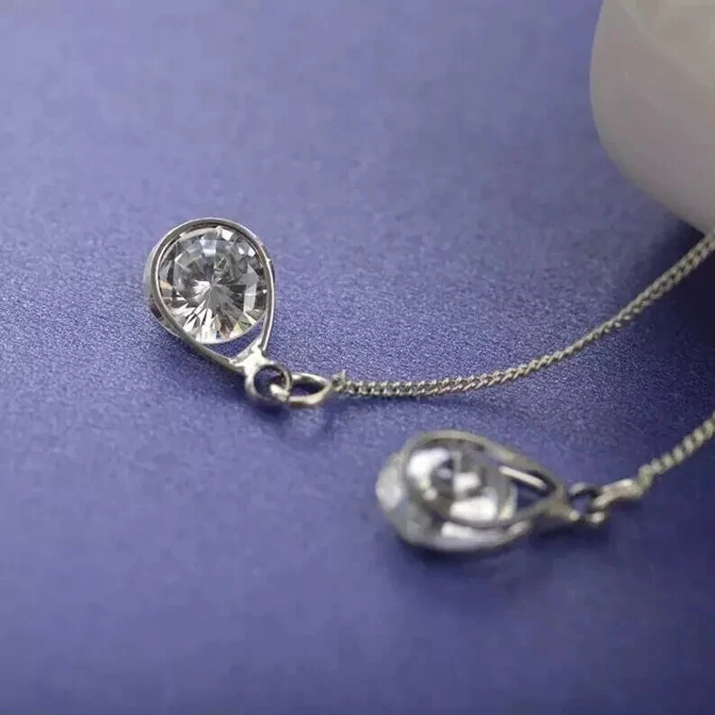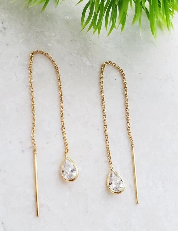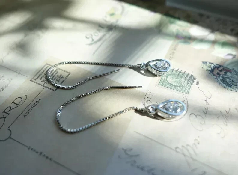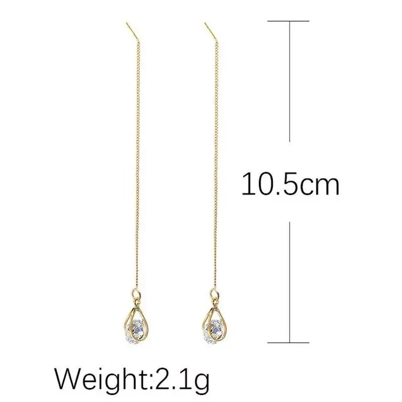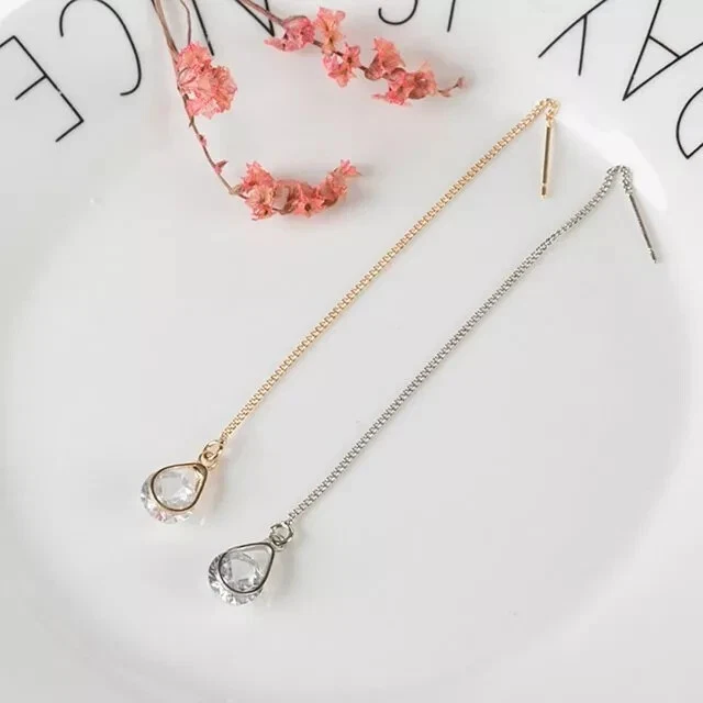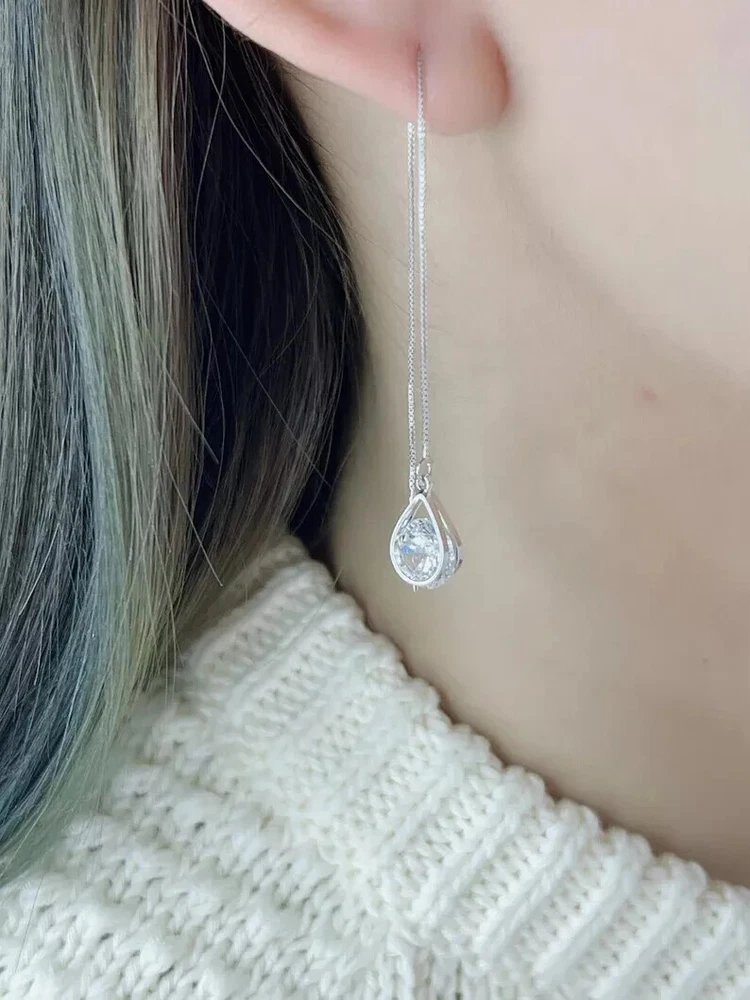 925 Silver Hot Long Chain Earrings Stud Threader Long Drop Tassel Crystal Dangle