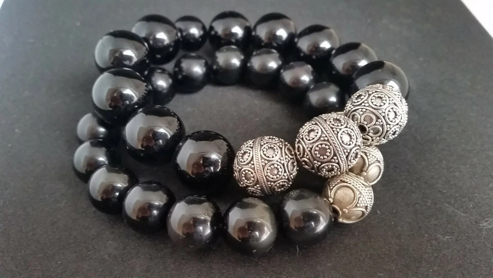 I am selling authentic 925 Sterling Silver brought and Made in Bali pearl jewelry with Obsidian beads made by a local craftsman in Bali. Currently, a very trendy stuff, because these jewelry are suitable for both women and men. These are authentic, hard-to-find, handmade works of art, not cheap precious metal-plated replicas! The set includes - Two jewelry with three each original 925 silver oxidized pearls, made in the traditional Balinese style of "granulation" and "wire", and it takes a lot of art and a lot of patience to get the effect you want. The master skillfully manipulates silver wires and silver beads on the silver surface. The diameter of these pearls is 16 mm and 12 mm, the size of the hole in the center axis is 2 mm. The price is indicated for a set of two finished jewelry bracelets. Sizes of bracelets - DON'T WORRY ABOUT THE SIZE AS THESE ARE STRETCHY AND FITTS ALL MEN WRIST!!! WILL BE LOOSE TO PETITE FEMALE WRIST! Obsidian! Obsidian has a volcanic character, sometimes called volcanic glass. The stone is formed when the lava spills on the surface and cools down quickly. He got his official name thanks to a Roman soldier named Obsidium, who was the first to bring such stones to Rome. From ancient times, people believed in the magical properties of obsidian, making all kinds of amulets and ritual knives. ALSO ICEWALKER KILLING KNIVES IN GAMES OF THRONES WERE MADE FROM THIS MATERIAL. The stone is now actively used in jewelry, construction and industry. Healing properties of stone . Obsidian is widely used in folk medicine, because it is believed that it has not only strong magical properties, but also healing properties. The stone can cure colds caused by hypothermia, as well as other ailments associated with too long a cold stay. Perhaps such a property gave him a fiery volcanic character. Specialists who studied lithotherapy noted that the stone has a beneficial effect on the condition of the gastrointestinal tract. If a person has digestive problems or suffers from heartburn, he should try to wear obsidian jewelry. The stone will also be useful for those who suffer from a drop in pressure. Interestingly, obsidian can help both with low blood pressure and vice versa if it is high. With spinal diseases or rheumatism, you can safely wear this stone - it promotes recovery and well-being. There will be no need to try obsidian jewelry for those who have problems with the functioning of the genitourinary system. In addition, the stone will help both men and women. During neurosis, you should often look at a black or rainbow obsidian and hold it in your hands. Calm, strong stone energy helps to restore peace of mind and recover. Do not miss! ;) Thank you for your interest. Good to know regulations! Item is shipped within 3 days with Royal Mail from UK , no returns or complains are accepted as I sell my own goods and once you buy it can not be returned! Please think twice before going any reckless behavior! But please contact me if you have any problems with your order.