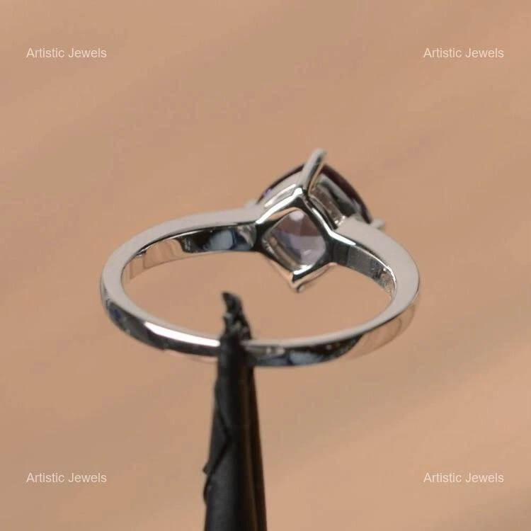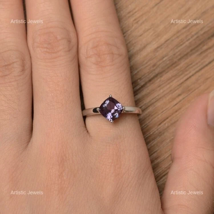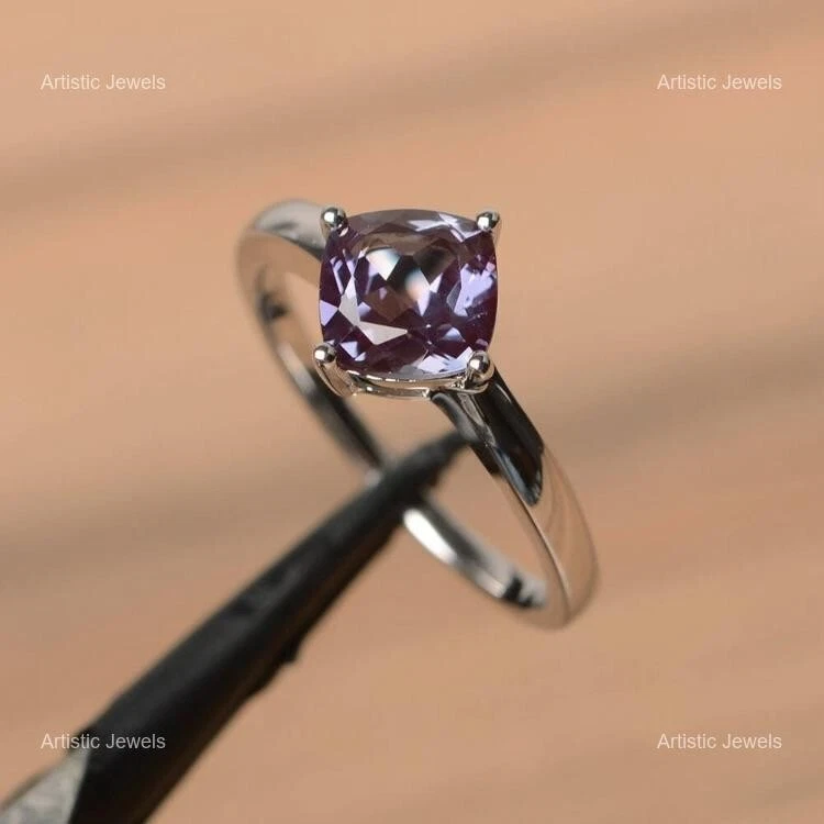 Complete your look for a glamorous evening in this gorgeous Sterling Silver Ring studded with Alexandrite. This will go well with all of your dresses and are attention seeking. Welcome to Waqikhan ! Lab-Created Alexandrite 925 Silver Stackable Ring Size All Size For Women NOTE :- "ALL RING SIZES ARE AVAILABLE WITH US FROM SIZE 4 TO 14. PLEASE MESSAGE US WITH DESIRED SIZE OF YOURS" Description :- SKU:- M792 Metal:- Sterling Silver Metal Purity:- 925 Gemstone:- Alexandrite Gemstone Color:- Blue Gemstone Shape :- Cushion Gemstone Creation :- Lab-Created Stone Setting :- Prong Ring Size:- All Size US Shipping & Delivery Policy :- We offer worldwide shipping via Registered and Express mail services, each providing a tracking number for your convenience. Please note that any additional charges, such as customs duties or taxes, are the responsibility of the buyer. We only ship to the registered address provided during checkout. Handling Time :- 2-3 business days. Delivery Time :- Standard shipping typically takes 15-25 days, depending on your location. Expedited shipping is available for an additional fee. Return & Refund Policy :- Your satisfaction is our top priority. If you're not completely happy with your purchase, please contact us immediately so we can address any concerns. We offer a 100% satisfaction guarantee, including full refunds. Return Period :- Items may be returned within 30 days of receiving your order. Payment & Support :- We value our customers! If you have any questions or concerns, please feel free to reach out. We are committed to ensuring your satisfaction and resolving any issues. Feedback :- We provide positive feedback upon receiving payment. If you encounter any issues, please contact us before leaving neutral or negative feedback. We are dedicated to resolving problems swiftly and professionally. Jewelry Care Instructions :- Avoid Liquids & Chemicals: Keep your jewelry away from perfumes, seawater, chlorinated pools, hairspray, and sweat. Remove at Night: Take off your jewelry before sleeping to prevent damage. Protect from Heat & Humidity: Keep your pieces away from direct sunlight, high temperatures, and humid conditions. Avoid Water: Remove jewelry before bathing, showering, or swimming. During Physical Activities: Take off jewelry during exercise, cleaning, or gardening to prevent damage. Cleaning: Gently clean your jewelry after each wear and occasionally polish with a soft cloth. Proper Storage: Store your jewelry in an airtight container or jewelry box, and keep pieces separate to avoid scratches. Why Choose Us? Harmless & Hypoallergenic :- Our jewelry is nickel-free, lead-free, and hypoallergenic, handcrafted with care by Waqikhan. Perfect Gift :- Ideal for birthdays, weddings, anniversaries, and special occasions, our timeless designs make thoughtful gifts. Solid 925 Sterling Silver :- All pieces are made from genuine 925 sterling silver, stamped for authenticity, and designed for everyday wear. Versatile & Stylish :- Our jewelry is the perfect complement to any outfit or occasion, blending modern sleekness with classic elegance. Mesmerizing Design :- Each piece comes beautifully packaged in a jewelry box, making it an ideal gift for Mother’s Day, Valentine’s Day, anniversaries, and more. Our Policies :- Image Policy :- All product photos are taken in natural lighting to ensure the item you see is exactly what you’ll receive. Product Guarantee :- You will receive the exact handmade product shown in the images. Orders & Customization :- We accept orders from around the world, including custom and bulk requests. Please reach out with any special requirements. Customer Satisfaction :- Your feedback is important to us! After receiving your product, we encourage you to leave a review. Your satisfaction is our priority. Thank you for choosing Waqikhan! We look forward to serving you.