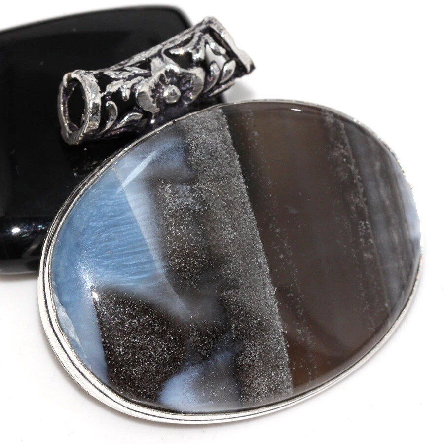 925 Silver Plated Owhyee Blue Opal Ethnic ChunkyPendant Jewelry Size 1.5" JW