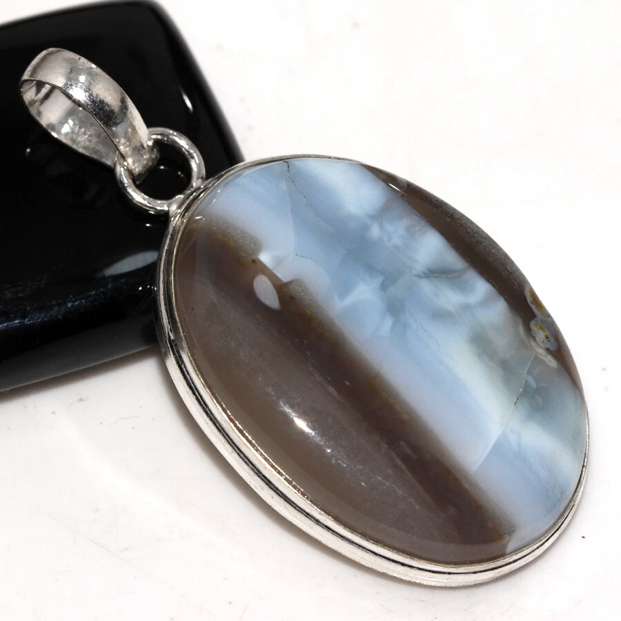 925 Silver Plated Owhyee Blue Opal Ethnic Pendant Handmade Jewelry Size 2" JW