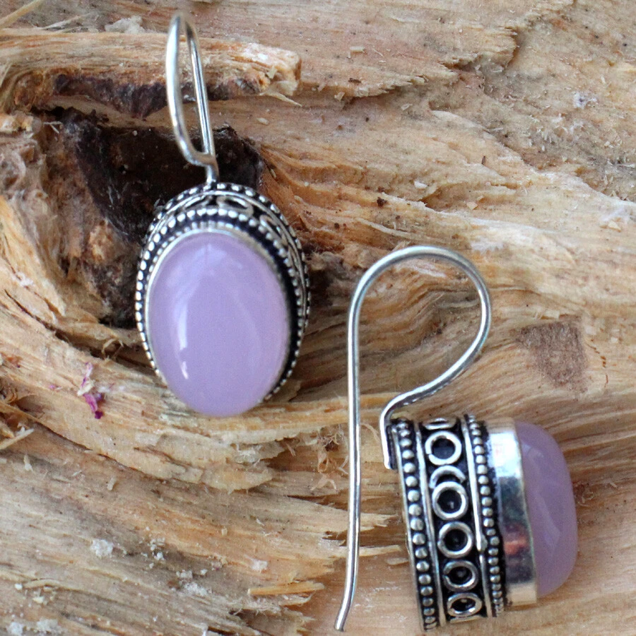 925 Silver Plated Vintage Pink Chalcedony Earrings Jewelry Size 1.3" JW