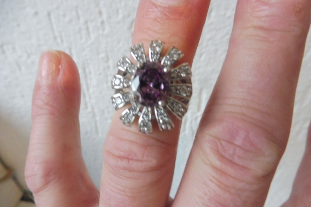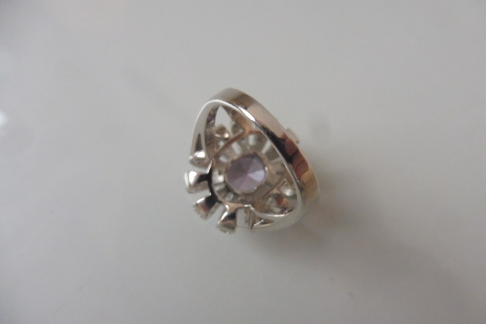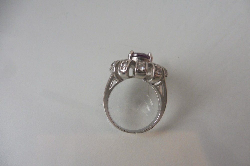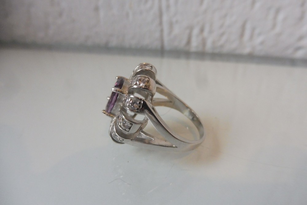 Ring, 925 Silver With Fine Sanded Stones, Fine Ring The description of this item has been automatically translated. If you have any questions, please feel free to contact us. Very nice silver ring. 925 silver with a finely cut stone (a large purple stone in the middle and small transparent stones around it , unfortunately I don't know exactly what kind of stones they are, see photos). beautifully and high quality work. Good condition (as new, unworn, see photos. )! Dimensions: approx. 2.8cm deep, 2.1cm wide, 2.1cm high, ring size approx. 55, 7.7 grams heavy. Very nice silver ring! A matching necklace and earrings for this ring in my shop! You can find more beautiful jewelry in my shop! You can find many more beautiful, interesting, old and antique things in my other articles, take a look! Legal provisions Seller's notes This article is excluded from the General Product Safety Regulation 2023/988 (GPSR). Because they are either animal by-products, antiques, collector's items or works of art. Very nice silver ring. 925 silver with a finely cut stone (a large purple stone in the middle and small transparent stones around it , unfortunately I don't know exactly what kind of stones they are, see photos). beautifully and high quality work. Good condition (as new, unworn, see photos. )! Dimensions: approx. 2.8cm deep, 2.1cm wide, 2.1cm high, ring size approx. 55, 7.7 grams heavy. Very nice silver ring! A matching necklace and earrings for this ring in my shop! You can find more beautiful jewelry in my shop! You can find many more beautiful, interesting, old and antique things in my other articles, take a look! Legal provisions This article is excluded from the General Product Safety Regulation 2023/988 (GPSR). Because they are either animal by-products, antiques, collector's items Marke . Farbe Silber Produktart Ring Feingehalt 925 Basismetall Silber Ringgröße 55 (17,5 mm Ø) Hauptsteinfarbe Lila Hauptstein Unbekannt Metall Sterlingsilber