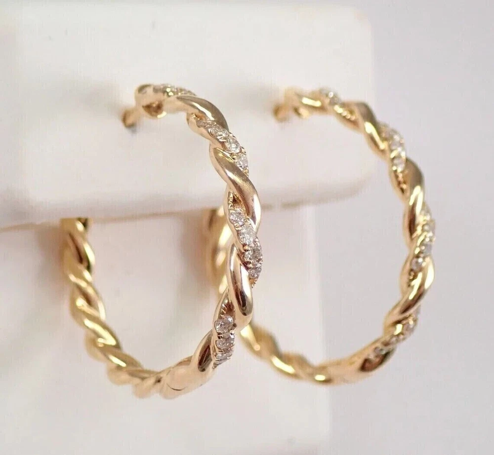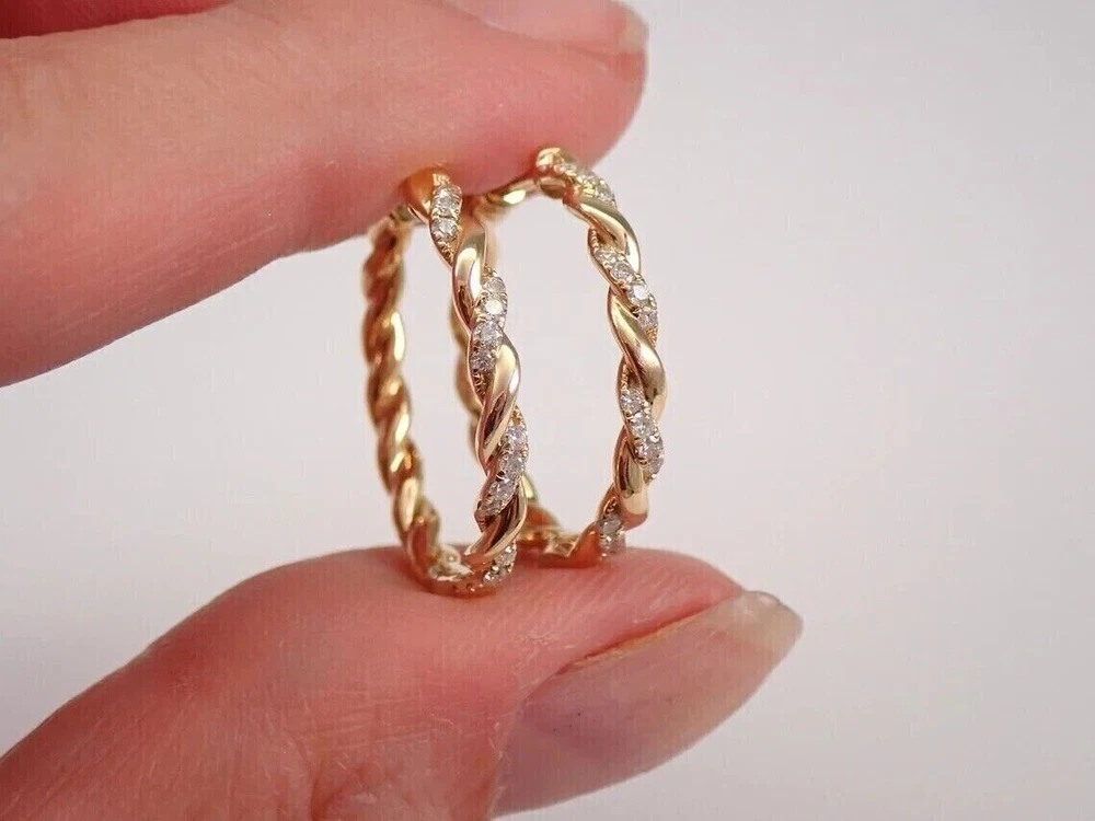 925 Silver Simulated Diamond Women's Fancy Hoop Earring 14K Yellow Gold Plated