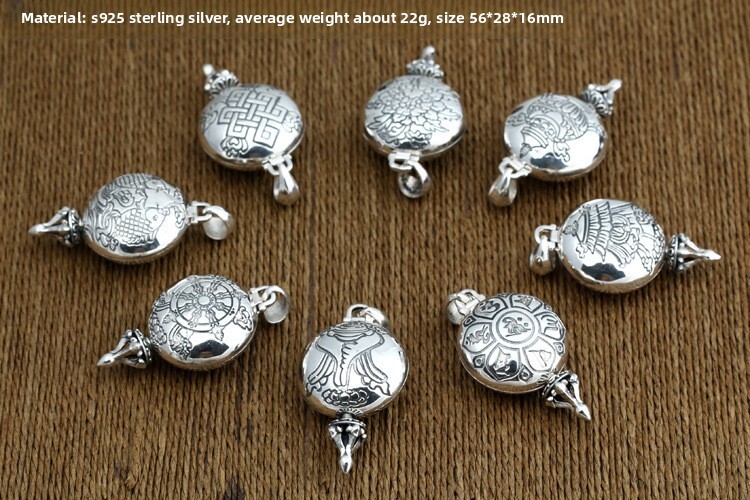 S92 5 Sterling Silver Tibetan Ghau Box / Prayer Locket Pendant - Choose Your Auspicious Symbol Substantial & Intricately Detailed Amulet Holders - Average Weight 22 Grams! (Pendant Only) Carry your sacred prayers, relics, or personal keepsakes in profound style with one of these exceptional Tibetan Ghau Box (Prayer Locket) Pendants . Each pendant is masterfully crafted from solid S925 Sterling Silver and features a unique, deeply embossed auspicious Tibetan Buddhist symbol on its front. These substantial lockets open to reveal a space for your treasured items, serving as a powerful personal amulet. The "Thai Silver" style oxidized finish beautifully highlights the intricate details of each design. Choose Your Sacred Symbol (Subject to Availability - Please See Photos): Endless Knot (Shrivatsa) Lotus Flower / Chrysanthemum Kalachakra Symbol (Tenfold Powerful Ones) Double Fish (Ashtamangala) Dharma Wheel (Dharmachakra) Designs incorporating Vajra / Dorje elements Other traditional auspicious Tibetan motifs (Please select your desired design from the available options when ordering. Each pendant is sold individually.) **PLEASE NOTE: This listing is for ONE PENDANT ONLY, with your choice of design. The chain shown in photos is for illustrative purposes and is NOT included.** Key Features & Purposeful Design: ✓ Authentic Ghau Box / Prayer Locket: Traditional Tibetan amulet holder that opens to contain sacred items. ✓ Solid S925 Sterling Silver: Ensures durability and a lasting, beautiful shine. ✓ Variety of Embossed Auspicious Symbols: Choose the design that resonates most with you from a selection of powerful Tibetan motifs. ✓ Very Substantial Average Weight: Each pendant weighs approximately 22 grams , indicating very solid and high-quality construction. ✓ "Thai Silver" Style Oxidized Details: Enhances the depth and intricacy of the embossed symbolic artwork. ✓ Secure Closure: Designed to keep your sacred items safe within. ✓ Decorative Bottom Element: Many designs feature an ornate pointed finial, some resembling a half-Dorje/Vajra. Specifications (Approximate Average per Pendant): Product Type: Ghau Box / Prayer Locket Pendant (Chain NOT included - Sold Individually by Design) Material: S925 Sterling Silver (Pure Silver) Approx. Overall Height (including bail & bottom element): 56 mm / 2.20 inches Approx. Locket Diameter: 28 mm / 1.10 inches Approx. Locket Thickness: 16 mm / 0.63 inches Average Weight: 22 grams / 0.78 ounces A Personal Vessel for Blessings and Protection: These S925 Sterling Silver Ghau Boxes are more than just beautiful pendants; they are personal sanctuaries for items that hold deep spiritual meaning. Choose the symbol that speaks to your heart and carry its blessings with you. They make exceptional gifts for practitioners or anyone who appreciates the profound artistry and symbolism of Tibetan culture. Important Notes: This listing is for ONE PENDANT (Ghau Box) ONLY , with your choice of embossed design. No chain is included. All measurements (dimensions and weight) are approximate, with weight being an average across the designs. Please allow for slight variations due to manual crafting. The actual color and oxidized finish may vary slightly due to lighting conditions during photography and individual monitor settings. Please review all provided images carefully to see the different designs available and select your preferred symbol. Thank you for viewing! Feel free to ask any questions before purchasing your chosen Tibetan Ghau box pendant. On Jul 18, 2025 at 19:00:53 PDT, seller added the following information: