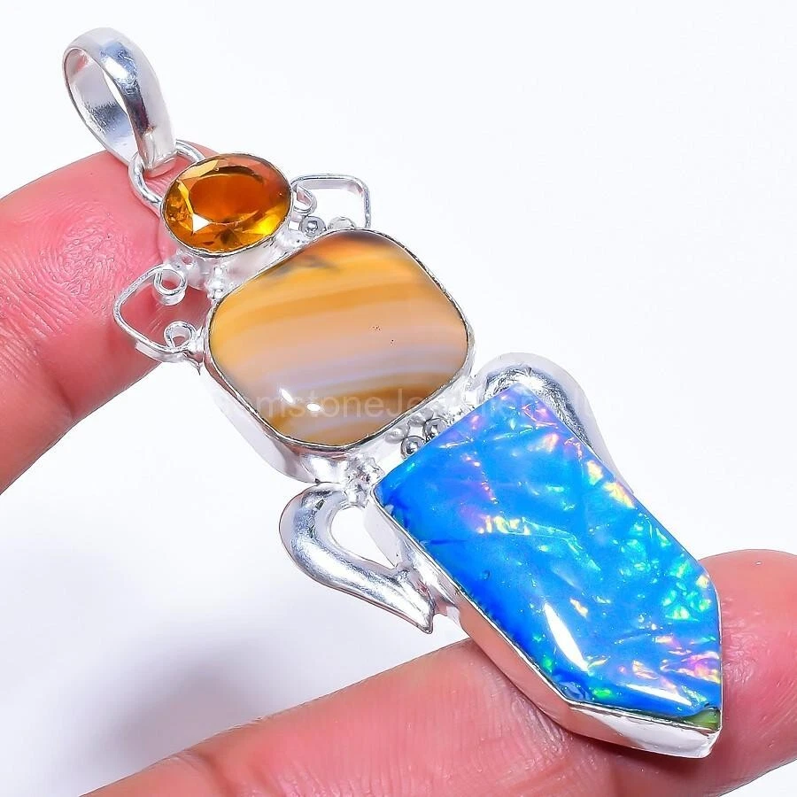 Welcome to Gemstone Treasure Hub Gift For Women Pendant 925 Sterling Silver Australian Triplet Opal Gemstone Handmade Pendant, Sterling Silver Pendant, Australian Triplet Opal Pendant, Handcrafted Pendant SKU : MP-3285 Gemstone : Australian Triplet Opal Stone Shape : As Seen In Picture Metal Purity : 925 Sterling Silver Length : 2.25 Inches Width : Inches ___________________________________________________________________ Shipping Handling - Charge - Free ( Condition apply ) Handling Time - One business day . Delivery Time - 3 to 23 Days ( Various on destination ) Postage service - (A.) India Post - Below $100 order which takes 11 to 23 days . (B.) USPS, Fedex, DHL , Aramax- Order above $100 which takes 3 to 7 days . _________________________________________________________________ Returns - 1. We provide a 100% Money Back Guarantee, excluding shipping costs, within 30 days from the date of item receipt. 2. The item must not be altered or damaged in any way shape or form. 3. Upon receiving these items your payment will be refunded. 4. Kindly reach out to us via email to obtain return instructions prior to initiating the return of merchandise. 5. Please allow up to 1 business day for all returns to receivecredit. 6. Sizing does not affect the return policy. _________________________________________________________________ Payment - We accept PayPal for Payment , should made within three days once buying or winning done , in case of late information expected . _________________________________________________________________ FAQ's - Q.(A) ARE THE ITEMS YOU ARE SELLING BRAND NEW? We exclusively offer brand-new products, refraining from the sale of pre-owned jewelry. Our entire jewelry collection is composed of 100% natural, conflict-free pieces. We do not engage in the trade of imitation or lab-grown gemstones and diamonds. Q.(B) WHAT ARE YOUR BUSINESS HOURS? Our business hours are Monday to Friday, 10:00AM to 6:00PM, excluding holidays. ________________________________________________________________ Gemstone Treasure Hub is dedicated to providing customers with exceptional handmade jewelry crafted to the highest standards of quality. We operate as both connoisseurs and manufacturers of artisanal jewelry, possessing a profound expertise in the art of elevating gemstones to perfectly align with any aesthetic preference. We are pleased to offer you the opportunity to create your own jewelry collection, adorned with authentic and exquisite natural gemstones. Our team of highly skilled artisans painstakingly crafts each individual jewelry piece, ensuring the creation of products with a unique identity that feature genuine gemstones. The jewelry articles presented on our website accurately depict the precise pieces that you will receive.
