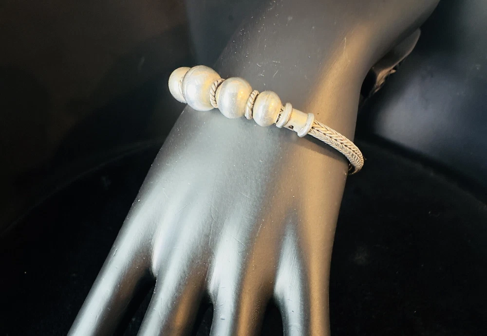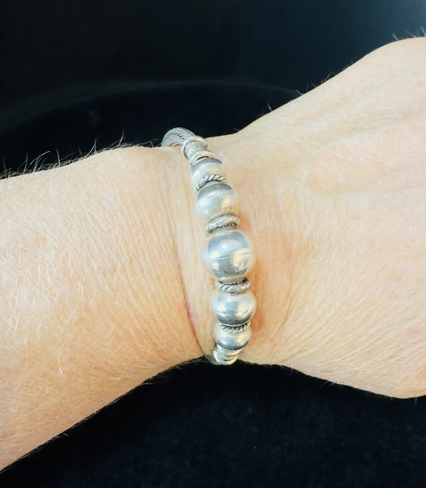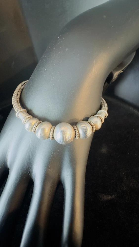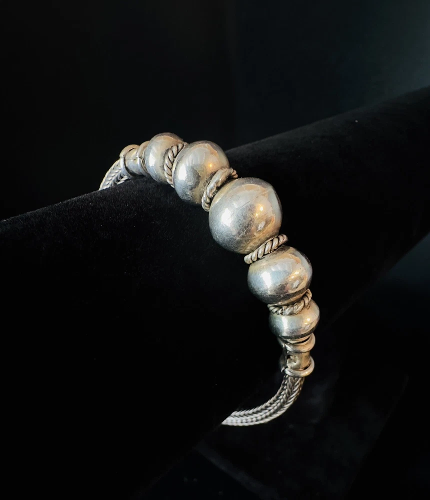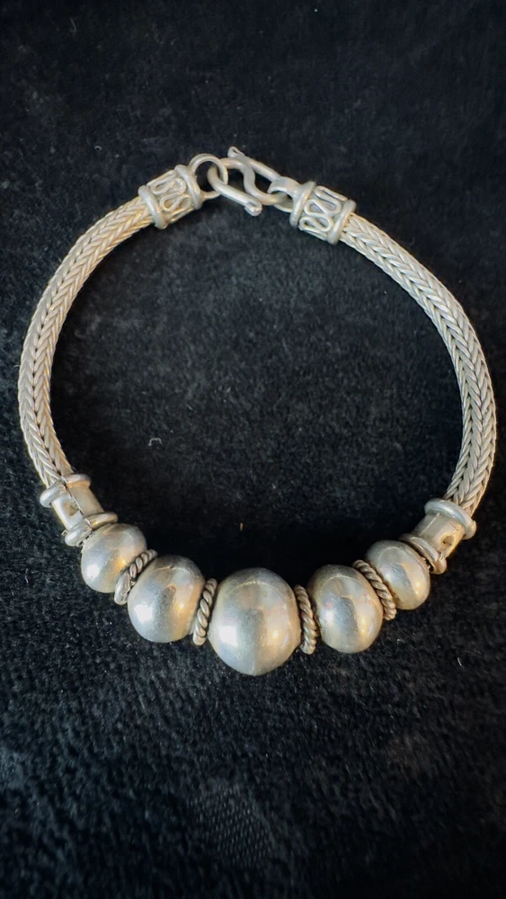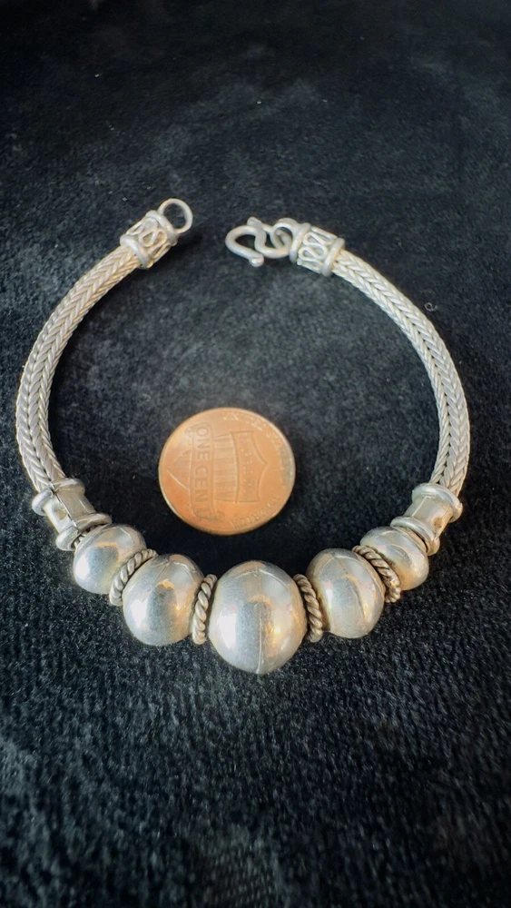 925 Sterling Silver Bali Snake Chain W/ 5 Graduating Silver Balls Bracelet 7”. Condition is Pre-owned. Shipped with USPS Ground Advantage.