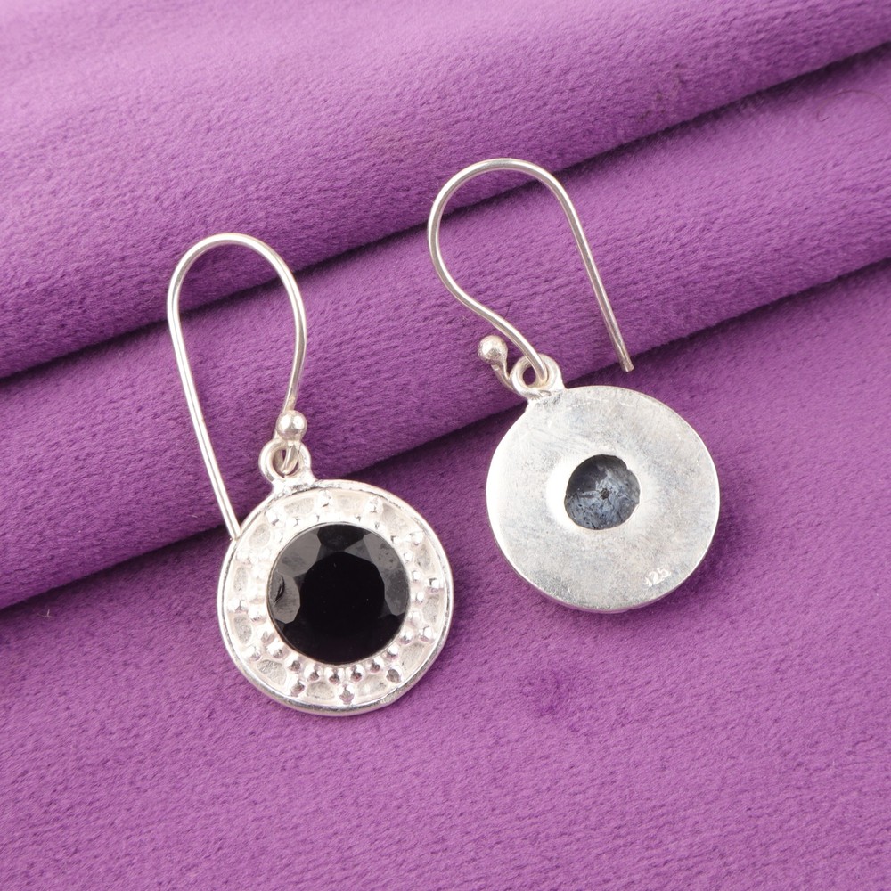 Welcome To Our Shop Gempires ------------------------------------------- Complete your look for a glamorous evening in this gorgeous Sterling Silver Earrings studded with Black Onyx. This will go well with all of your dresses and are attention seeking. 925 Sterling Silver Black Onyx Gemstone Wedding Wife Dangle Root Chakra Earrings Check My Other Earrings Listings : Click Here SKU:- EE-153-18 Metal:- Sterling Silver Metal Purity:- 925 Gemstone:- Black Onyx Gemstone Color:- Black Gemstone Shape :- Round Gemstone Creation :- Natural Stone Setting :- Bezel Earring Length:- 1.5 Inches Earring Width:- Inches ___________________________________________________________________ Shipping Handling - Free Standard Shipping all over the world Handling Time - 2 to 5 BUSINESS Days Delivery Time - 7 to 20 Days ( Various on destination ) _________________________________________________________________ Returns - 1.We provide a 100% Money Back Guarantee, excluding shipping costs, within 30 days from the date of item receipt. 2.The item must not be altered or damaged in any way shape or form. 3.Upon receipt of the aforementioned items, your payment will be promptly refunded. 4.Please be so kind as to contact us via email in order to acquire comprehensive return instructions before proceeding with the return of the merchandise. 5.Kindly be advised to allocate a maximum period of 1 business day for the processing of all returns, in order for the appropriate credit to be applied. 6.Sizing does not affect the return policy. _________________________________________________________________ FAQ's - Q.1 ARE THE ITEMS YOU ARE SELLING BRAND NEW? We exclusively offer brand-new products, refraining from the sale of pre-owned jewelry. Our entire jewelry collection is composed of 100% natural, conflict-free pieces. We do not engage in the trade of imitation or lab-grown gemstones and diamonds. Q.2 WHAT ARE YOUR BUSINESS HOURS? we operate 24x7 as we have a dedicated team who works in different shifts to deliver the services to our valuable customers. ________________________________________________________________ Gempires is committed to delivering customers an unparalleled experience through the provision of exquisite handmade jewelry, meticulously crafted to uphold the most exacting standards of quality. Our operations encompass dual roles as both discerning connoisseurs and skilled artisans within the realm of jewelry making. We proudly hold an extensive proficiency in the fine art of enhancing gemstones, allowing us to harmonize them seamlessly with diverse aesthetic inclinations. We are delighted to extend to you the privilege of curating your very own jewelry collection. This collection will be graced by the presence of genuine and splendid natural gemstones, each possessing an innate authenticity and beauty that is truly unparalleled. **** STAY BLESSED ALWAYS*****
