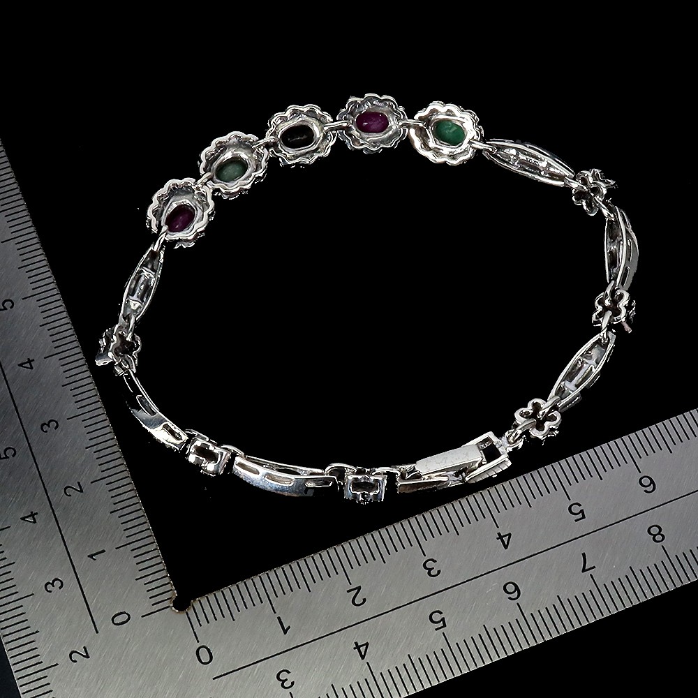 925 Sterling Silver Bracelet Oval Ruby Emerald Sapphire Gemstone Jewelry 8in PRODUCT ID BA2503050060 PRODUCT TYPE Bracelet TYPE OF METAL 925 Sterling Silver PLATE Ring size/Length (inches) 8 MAIN STONE Ruby OTHER GEMS Emerald, Marcasite, Sapphire TOTAL weight 17.22 gram (total weight of silver + stone) DIMENSION * STONE 6.0 X 4.0 MM. * MAIN STONE SHAPE Oval Cut MAIN STONE COLOR Top Rich Red Pink CLARITY/GRADE Opaque LUSTER TREATMENT Heated ORIGIN Africa HARDNESS 9 IF very high quality & Free from inclushions. VVS high quality with very slight inclushions. SI1 Good Quality with slight inclusions visible to the naked eye. SI2 include becoming prominent to the eye. I included. "Delivering excellent with eBay" we accept: PayPal payment which we prefer. FOR US BUYER >>>> PLEASE READ We are genuine seller from THAILAND. All products are originally 100% manufactured in THAILAND. Every items are 100% exported directly from THAILAND. However, we use shipping provider 'Webgistix' who is a US distributor. The items will be allocated from Webgistix's distribution office in Las Vegas, NV by USPS. Please understand that the tracking status will show starting from Las Vegas when you track the items. Feel free to ask for more details. We ship item(s) from Thailand to Worldwide in 24 hr. ( in working day ) after the payment was cleared. $10 - flat rate for a registered airmail, takes 20 - 40 days delivery. Thailand Post stops the service to Latvia, Lithuania, Malta, Moldova, Estonia, Georgia and Israel. Fedex cost up on destination with insure and online tracking. Destinations Asia NORTH AMERICA, CANADA EUROPE (WEST) EUROPE (EAST), SCANDINAVIA, MIDDLE EAST SOUTH AMERICA, AFRICA FEDEX EXPRESS (minimum) $70 $70 $70 $80 $80 Fedex rate will be charged by weight and destination area. A combine package is limited at 10 items within 10 days. Do not send your payment directly, just contact us to request total when you finish bidding (ebay cannot automatic combine items). Any single item weigh over 300ct is not eligible to combine. Buy over US $999 in one payment (10 items within 10days), Get Free FedEx shipment. TAX/CUSTOM: Custom fee is out of seller control. Buyer is responsible for the cost at arrived. Please give us an opportunity when you have questions with item received. Buyer can make agreement on discount or return the shipping in case of damage item. Seller is located in Thailand. So please contact seller for the instruction before return any item. Your communication is most important to solve the problem. International buyers note: Import duties, taxes, and charges are not included in the item price. These charges are the buyer's responsibility. Please check with your country's customs office to determine what these additional costs will be prior to bidding/buying.