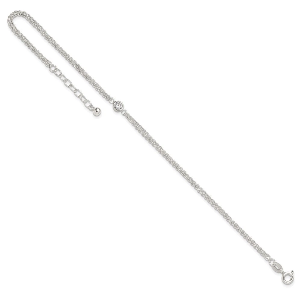 $ 52.8925 Sterling Silver Cubic Zirconia Fancy Chain Anklet 9 Inch with 1 Inch Extension