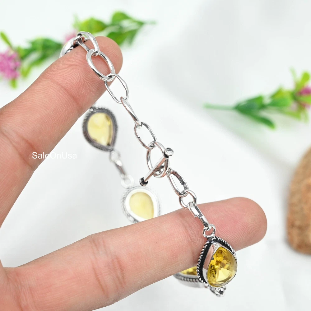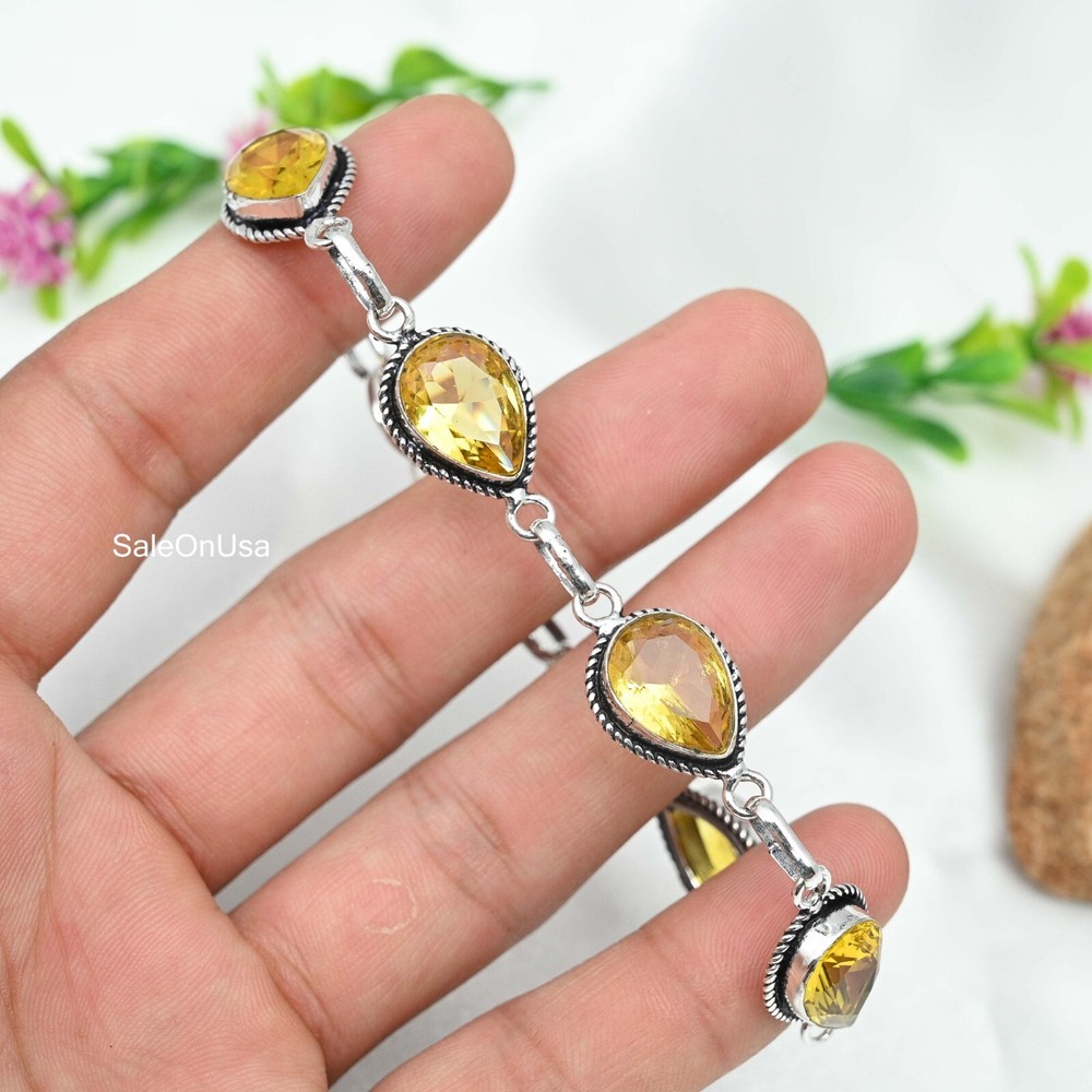 925 Sterling Silver Citrine Gemstone Bracelet Handmade Party Gift for Women