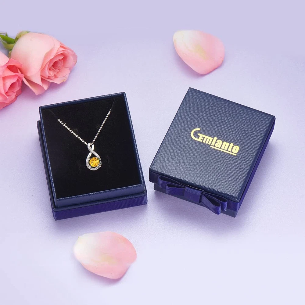 CITRINE NECKLACE:This birthstone necklace is designed with infinity symbols and inlaid with a yellow round-shape stunning and shining created citrine gemstone. Citrine is the November Birthstone, Represents friendship and happiness. GIFTS FOR HER: Personalized Gifts for her, mom, wife, girlfriend, sister, dauhter, friend, grandmom. Each item beautifully packaged and ready for gift giving. We are sure the beautiful Jewelry can be the perfect gift for Birthday, Anniversaries, Valentine's Day, Mother's Day, Christmas, or Wedding celebration. SIZE: Pendant:0.5"*0.9", Gemstone: 7.5mm, Chain Length: 16+2 inch STERLING SILVER JEWELLERY: The pendant and the chain are made of 925 sterling silver, all the metals we use are lead free, nickel free and hypoallergenic. GREAT SERVICE: If you are not completely happy with our products, no matter what reasons please kindly feel free to contact us.