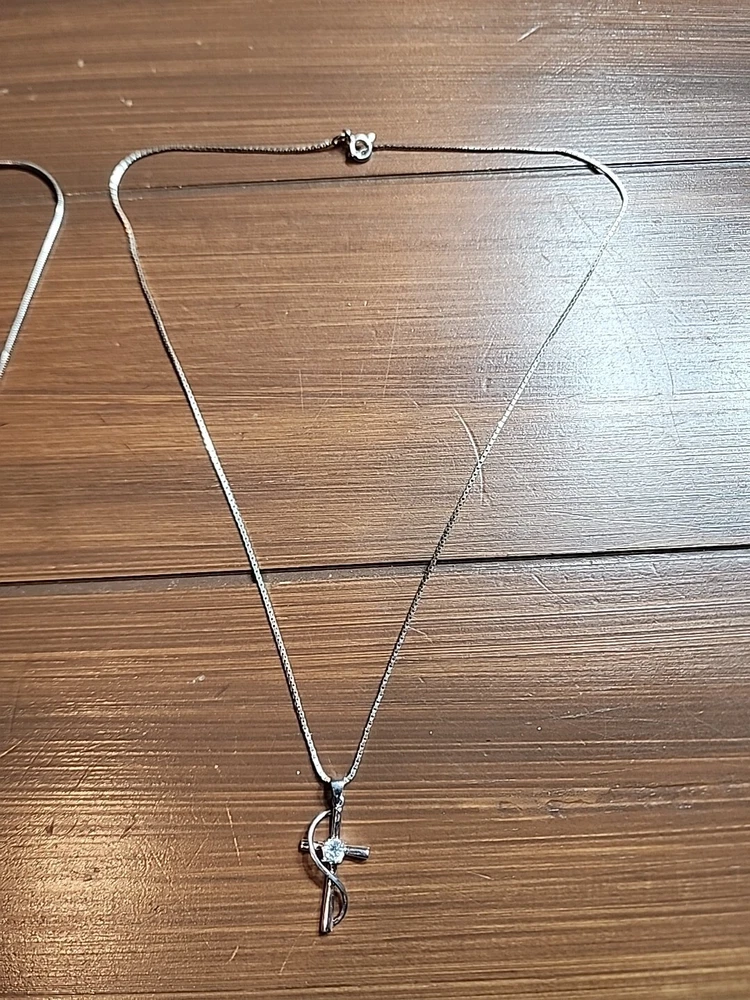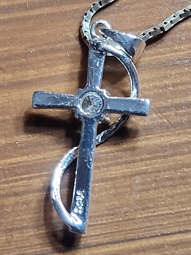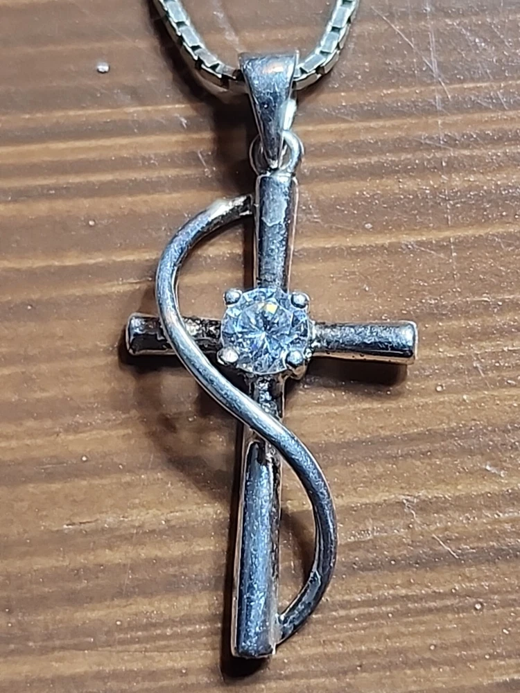 1 Cruxifix Cross Pendant Necklace Chain Chrome color Church VTG christianity