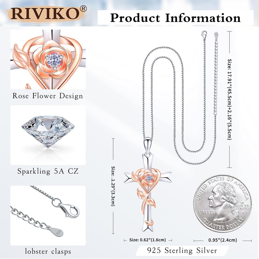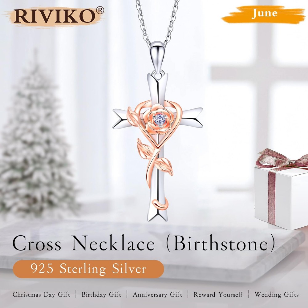 đă925 Sterling Silver Materials Don't Tarnish Easily ăcross necklace for women is made of meticulously 925 sterling silver with rose plating. Won't hurt your skin. Smooth and shiny surface that will maintain a long-lasting shine. Cross rose necklace suits for daily wear,party, Nightclub, Birthday,Dating, etc.Manufacturer recommended ageïŒ13+. đăVintage & Elegant Cross Jewelry Designă The womens cross necklace with rose details design is beauty and unique, goes well with any other accessories, show your personality. It can as a birthday necklace for her. Rose and heart means love ,romantic. Cross jewelry for women symbolize inspiration forgiveness ,balance,transition unity, hope, vitality and life. đăCross Valentines Gift For WomenăThe cross charm pendant is delicate,This unique cross rose flower birthstone necklace is the nice gift for women, mother, grandmas, aunts, wives, wife,bonus mom, stepmom, friends and bridesmaid for Valentines,Christmas,Religious Jewelry Gift,Thanksgiving,womens Valentines gifts,Valentine's Day, Mother's Day,birthdays,weddings,anniversary gifts from husband. đăCross Birthstones Pendant Meaningă Associated with loyalty and love, the red color birthstone in January with positivity.Feb is purple and represents peace and sincerity. March for its striking blue color, indicative of health and courage. A white birthstone is April the symbol of eternal love and innocence. May symbols of spring, beauty and happiness.Topaz for Dec, means success,good luck and vitality. When she wears this silver necklace, she can feel your strength. đăSize & PackingăCross rose pendant:1.29"X 0.62". Cross jewelry chain size:17.9"+2". This birthstone cross necklace for women is fastened with a lobster clasp, and adorned with CZ stones. The rose birthstone necklace for women trendy comes with a navy-blue gift box,no wrapping is needed, and a cleaning cloth used for polishing it. .We are dedicated to satisfying and providing nice women's jewelry for you.