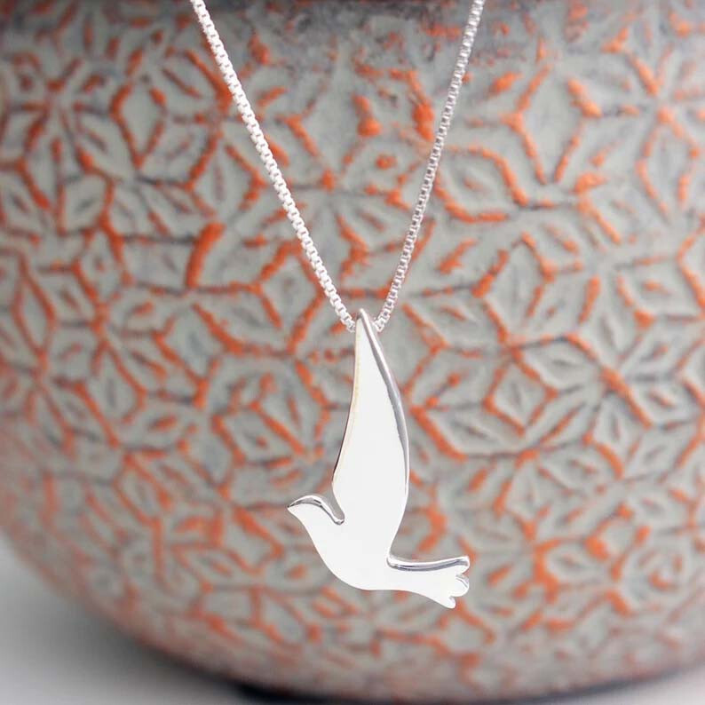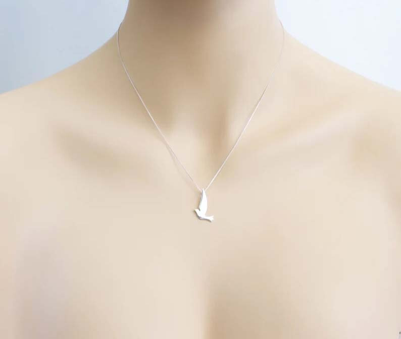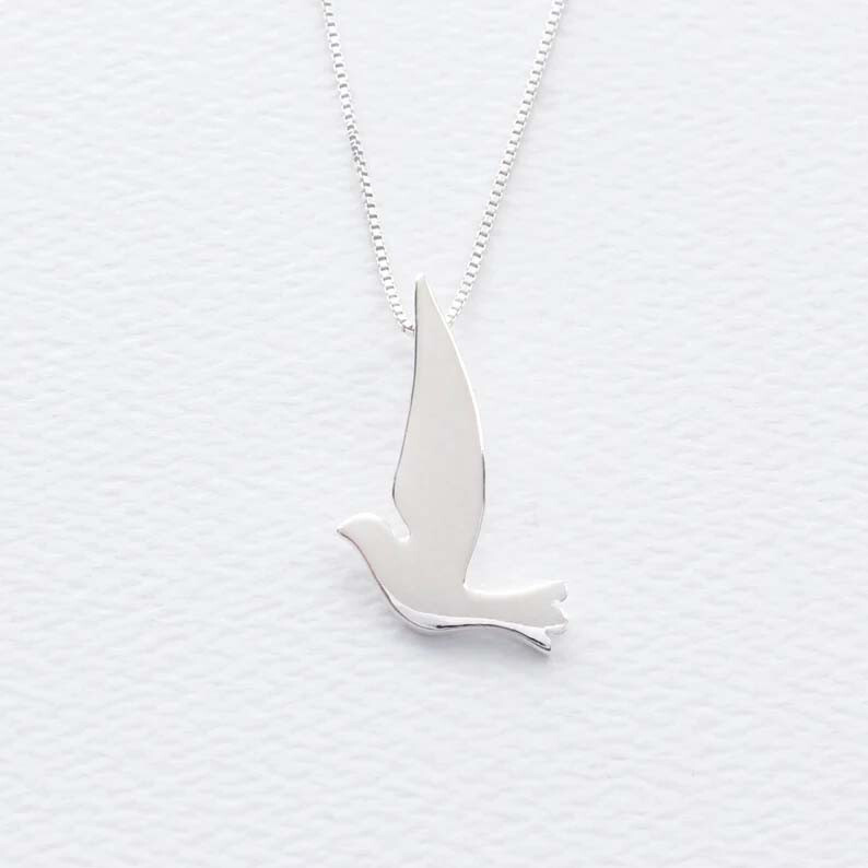 925 Sterling Silver Dove Bird Pendant Handmade Bird Nature Pendant Women's Gift Without Chain Celebrate peace, love, and freedom with this exquisite 925 Sterling Silver Dove Bird Pendant . Designed to capture the grace and symbolism of the dove, this handcrafted pendant is a timeless accessory that speaks to the beauty of nature and the spirit of tranquility. Whether as a personal token or a thoughtful gift for a loved one, this pendant radiates elegance and meaning. Features and Design This stunning pendant showcases a beautifully detailed dove, a universal symbol of peace, hope, and renewal. The bird’s outstretched wings and sleek design create a sense of movement and grace, making it an eye-catching piece for any jewelry collection. Intricate Craftsmanship : Handmade by skilled artisans, ensuring a unique and finely detailed design. Polished Finish : The high-shine surface reflects light beautifully, adding a touch of elegance to your look. Lightweight and Comfortable : Perfect for daily wear or special occasions. Nature-Inspired Design : Ideal for women who love the outdoors, animals, or symbolic jewelry. Premium Quality Materials This pendant is crafted from genuine 925 sterling silver , known for its durability, brilliance, and hypoallergenic properties. Its tarnish-resistant quality ensures that it remains radiant over time, with proper care. Material : Solid 925 Sterling Silver Finish : High-polish for a smooth, gleaming surface Hypoallergenic : Safe for sensitive skin Specifications Weight : Light Weight and Comfort Wear Bail Opening : Without Chain Chain Not Included : Customize the look by pairing it with your favorite chain. A Meaningful Gift for Every Occasion This Sterling Silver Dove Bird Pendant is more than just a piece of jewelry—it’s a meaningful symbol of peace, love, and freedom. Its universal appeal makes it a perfect gift for any occasion: Birthdays : Celebrate someone special with a nature-inspired gift. Holidays : A thoughtful Christmas, Mother’s Day, or Valentine’s Day gift. Milestones : Mark a new beginning or an accomplishment with the symbol of the dove. Just Because : Show someone you care with a beautiful and symbolic token. Arrives in a charming gift box , ready to make a lasting impression. Symbolism of the Dove The dove is a powerful emblem of peace, purity, and hope, making this pendant a meaningful accessory. Worn close to the heart, it serves as a reminder of inner strength, freedom, and the beauty of the natural world. Styling Tips The versatility of this pendant allows it to complement any outfit, from casual to formal: Pair it with a dainty silver chain for an understated, everyday look. Layer it with other necklaces for a trendy, personalized style. Match it with sterling silver earrings or bracelets for a coordinated ensemble. Its lightweight design ensures comfort, making it suitable for all-day wear. Care Instructions To keep your 925 Sterling Silver Dove Bird Pendant looking beautiful: Avoid Harsh Chemicals : Remove before swimming, bathing, or using cleaning products. Store Safely : Keep it in a jewelry box or pouch to prevent scratches and tarnishing. Clean Regularly : Use a soft cloth or silver polishing cloth to restore its shine. With proper care, this pendant will remain a cherished part of your jewelry collection for years to come. Why Choose This Pendant? Handcrafted with Care : Each pendant is individually made, ensuring a unique and high-quality piece. Symbolic and Stylish : Combines meaningful symbolism with timeless design. Affordable Luxury : Superior craftsmanship and premium materials at an accessible price. Fast and Reliable Shipping We prioritize your satisfaction by offering: Secure Packaging : Your pendant will arrive safely packed in a beautiful gift box. Fast Dispatch : Orders are processed and shipped promptly. Customer Support : We’re here to assist you with any questions or concerns. Order Yours Today! Add this graceful 925 Sterling Silver Dove Bird Pendant to your jewelry collection or give it as a meaningful gift to someone special. Its nature-inspired design, spiritual symbolism, and exceptional craftsmanship make it a piece to treasure forever. Click “Buy Now” and embrace the beauty of peace, freedom, and love.