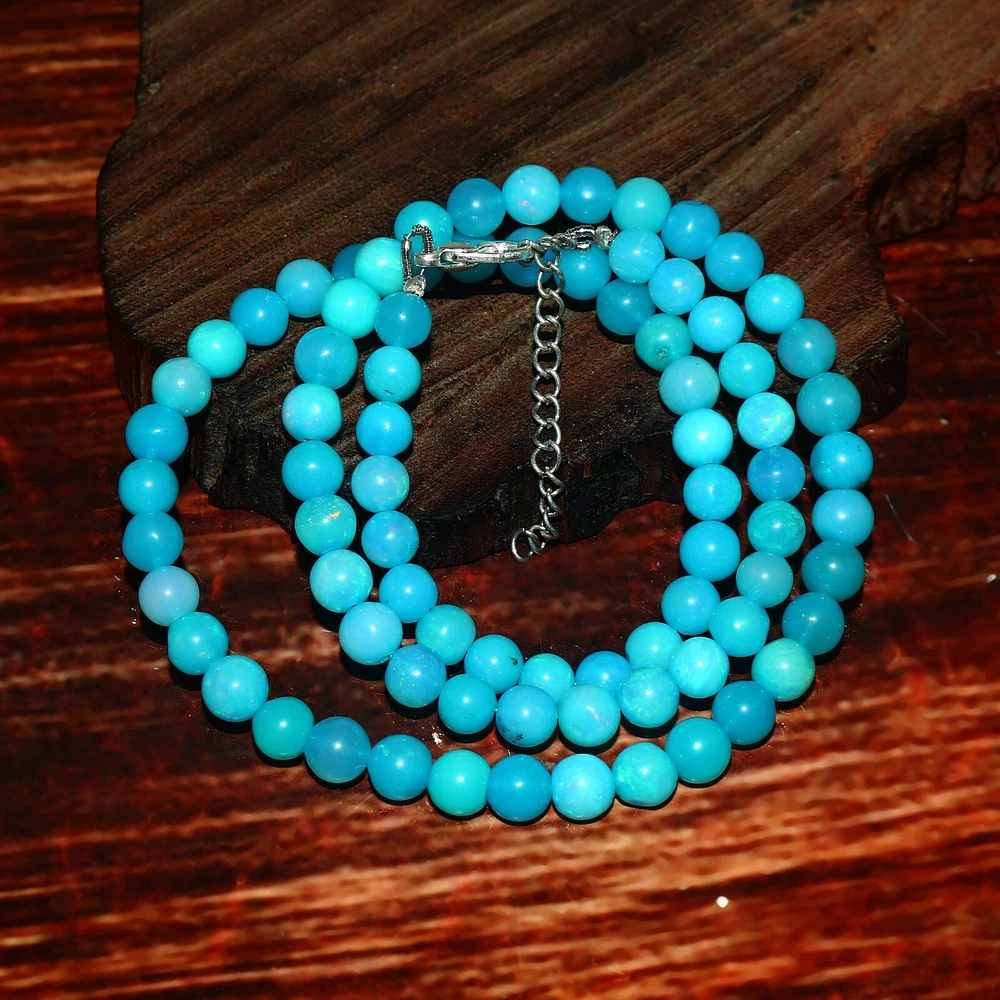 925 Sterling Silver Handmade Genuine Ethiopian Opal Beads Necklace Jewelry @25