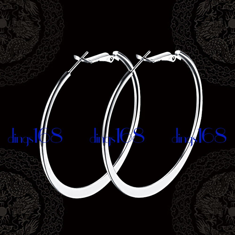 Other Sizes/Style in Stock: Latch back fastening closure Shape: Round, Flat Hoop MPN: Does not apply Features: Hypoallergenic, Nickel-Free, Cadmium-Free Guarantee: 60-Day Money-Back Guarantee Color: Silver Style: Hoop Closure: Level Back Brand: Generic Weight: 8.55 gram Type: Earring gtin13: Does not apply Gift Packaging: Free Gift Box Included Hoop thickness: 2mm wide on top; 3.8mm wide on bottom Metal: Sterling Silver Base Metal: Sterling Silver Metal Purity: 925 parts per 1000 Main Stone: No stone Hoop Diameter: 50.8 mm / 2 inch UPC: Does not apply Quantity: One pair of Earrings