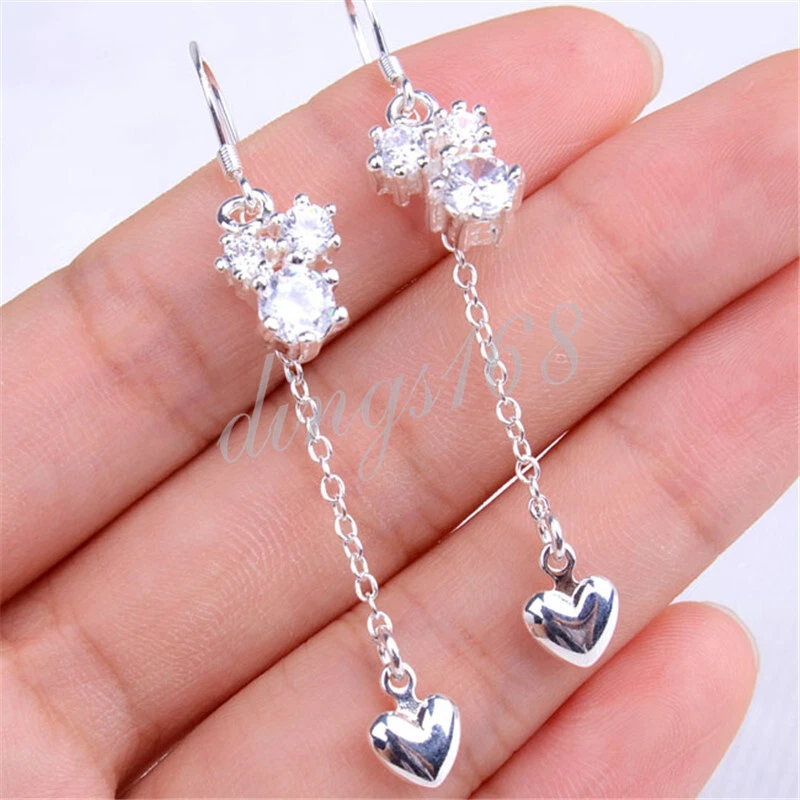 This listing is for one pair of 925 sterling silver hypoallergenic crystal 2"threader heart dangle earrings. It is tarnish-resistant and hypoallergenic. It will not flake off, tarnish or discolor. You can do your daily work without removing it. It is covered under our 60-day 100% money-back guarantee. *** Free gift box included. Product ID: H686 Metal: 925 Sterling Silver Color: White Product Dimension: 54 mm * 13 mm (2.12*0.50 inch) Weight: 4.13 gram Quantity: One Pair of Earrings Note: *** Please always refer to the description for the measurement of the product. Please do not judge the size based on the picture on your screen. The product may look larger or smaller based on your screen size. 100% Satisfaction Guarantee We offer 100% satisfaction guarantee for all products we sell. If you are not 100% satisfied, you may always return the product for full refund or exchange within 60 days of purchase. Shipping & Payment All orders are shipped through USPS(Postal Office) from our warehouse in California, USA within 24 hours after your payment reaches us. For International buyers: We ship to all countries. We pay all shipping charge in full before your package is shipped. For international buyers, you may be collected an fee when the package is delivered. It's an importing tax that your government charges to protect your domestic business and job opportunities. It's the buyer's responsibility to pay the tax. Contact us The best way to contact us is through eBay message by using eBay's "ask a question" link.