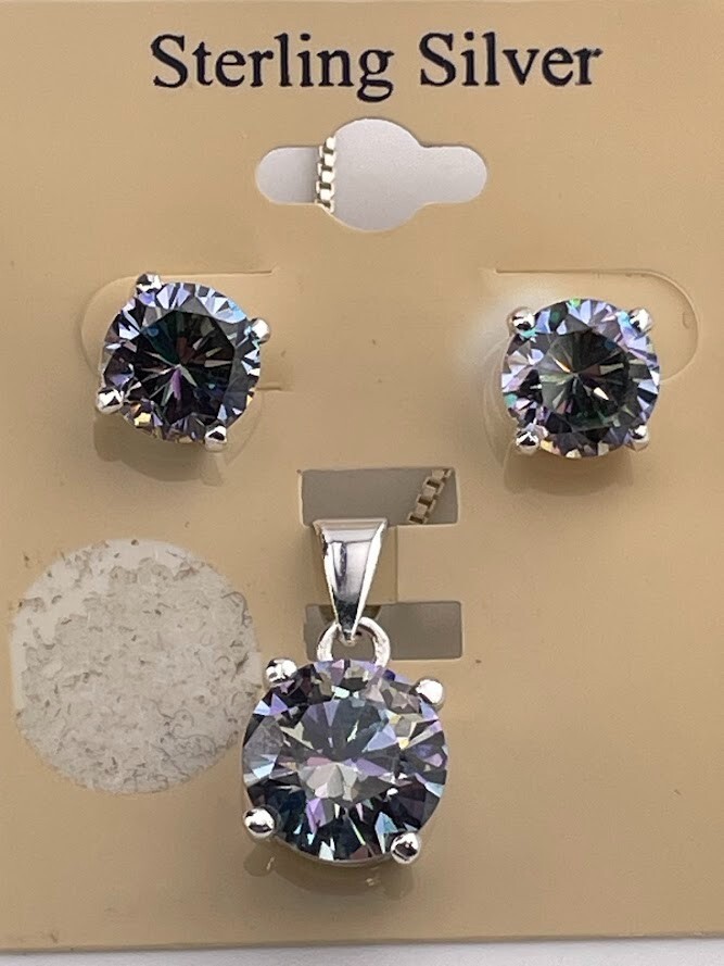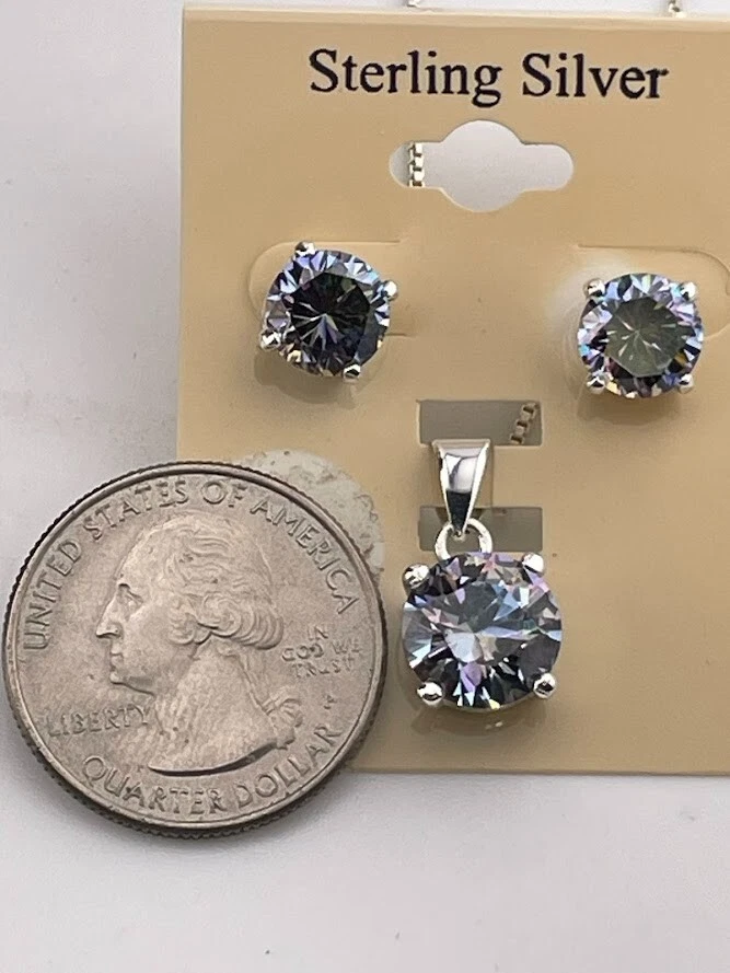 925 STERLING SILVER MYSTIC CRYSTAL NECKLACE 18" & STUD EARRINGS SET NWT 984 ****************************** Thank you for your interest in our jewelry. We?d like to introduce ourselves. We are just a retired couple who love matching our customers with great jewelry. We?re not professional jewelers. To have the best shopping experience we like to recommend the following: Please measure your hand, wrist, finger or neck to ensure the best fit. We can use your measurements to help with sizing. Please ask all the questions you want. We know some stuff and, if we don?t, we?ll do the research. We like to learn too. More Stuff: If an item is described as ?gold over 925 sterling silver? this means it is gold vermeil. Vermeil is the process by which a layer of gold (usually 14k or 18k) is bonded to sterling silver. We only clean with gentle soap and warm water to avoid damage. The items we sell may be new or pre-owned and may have normal wear, slight damage, and/or tarnish. We make every effort to ensure the items we sell are as described. This includes testing to confirm metal purity if the item isn?t marked, and testing for gemstone identity. We try to put measurements in the jewelry description and include a photo of each piece with a U.S. quarter (25mm).