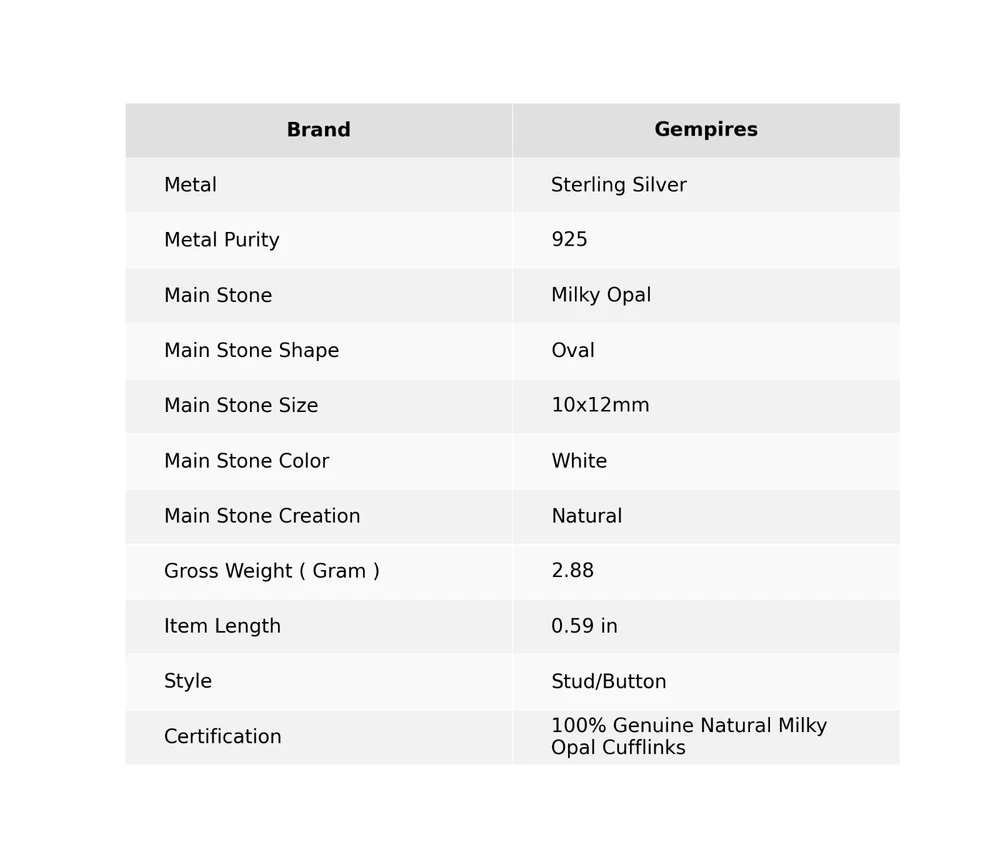 Welcome To Our Shop Gempires ------------------------------------------- Jewelry add an essence of appeal and grace to your looks; featuring a hand crafted Cufflinks with shiny Milky Opal; adding a whim of beauty. Team this adornment with casual dress or with party attire! 925 Sterling Silver Natural Milky Opal White Boyfriends Gift Designer Cufflinks Check My Other Cufflinks Listings : Click Here SKU: CL-2-20 Gemstone: Milky Opal Stone Shape: Oval Metal : 925 Sterling Silver Length: 0.59 Inches ___________________________________________________________________ Shipping Handling - Free Standard Shipping all over the world Handling Time - 2 to 5 BUSINESS Days Delivery Time - 7 to 20 Days ( Various on destination ) _________________________________________________________________ Returns - 1.We provide a 100% Money Back Guarantee, excluding shipping costs, within 30 days from the date of item receipt. 2.The item must not be altered or damaged in any way shape or form. 3.Upon receipt of the aforementioned items, your payment will be promptly refunded. 4.Please be so kind as to contact us via email in order to acquire comprehensive return instructions before proceeding with the return of the merchandise. 5.Kindly be advised to allocate a maximum period of 1 business day for the processing of all returns, in order for the appropriate credit to be applied. 6.Sizing does not affect the return policy. _________________________________________________________________ FAQ's - Q.1 ARE THE ITEMS YOU ARE SELLING BRAND NEW? We exclusively offer brand-new products, refraining from the sale of pre-owned jewelry. Our entire jewelry collection is composed of 100% natural, conflict-free pieces. We do not engage in the trade of imitation or lab-grown gemstones and diamonds. Q.2 WHAT ARE YOUR BUSINESS HOURS? we operate 24x7 as we have a dedicated team who works in different shifts to deliver the services to our valuable customers. ________________________________________________________________ Gempires is committed to delivering customers an unparalleled experience through the provision of exquisite handmade jewelry, meticulously crafted to uphold the most exacting standards of quality. Our operations encompass dual roles as both discerning connoisseurs and skilled artisans within the realm of jewelry making. We proudly hold an extensive proficiency in the fine art of enhancing gemstones, allowing us to harmonize them seamlessly with diverse aesthetic inclinations. We are delighted to extend to you the privilege of curating your very own jewelry collection. This collection will be graced by the presence of genuine and splendid natural gemstones, each possessing an innate authenticity and beauty that is truly unparalleled. **** STAY BLESSED ALWAYS*****