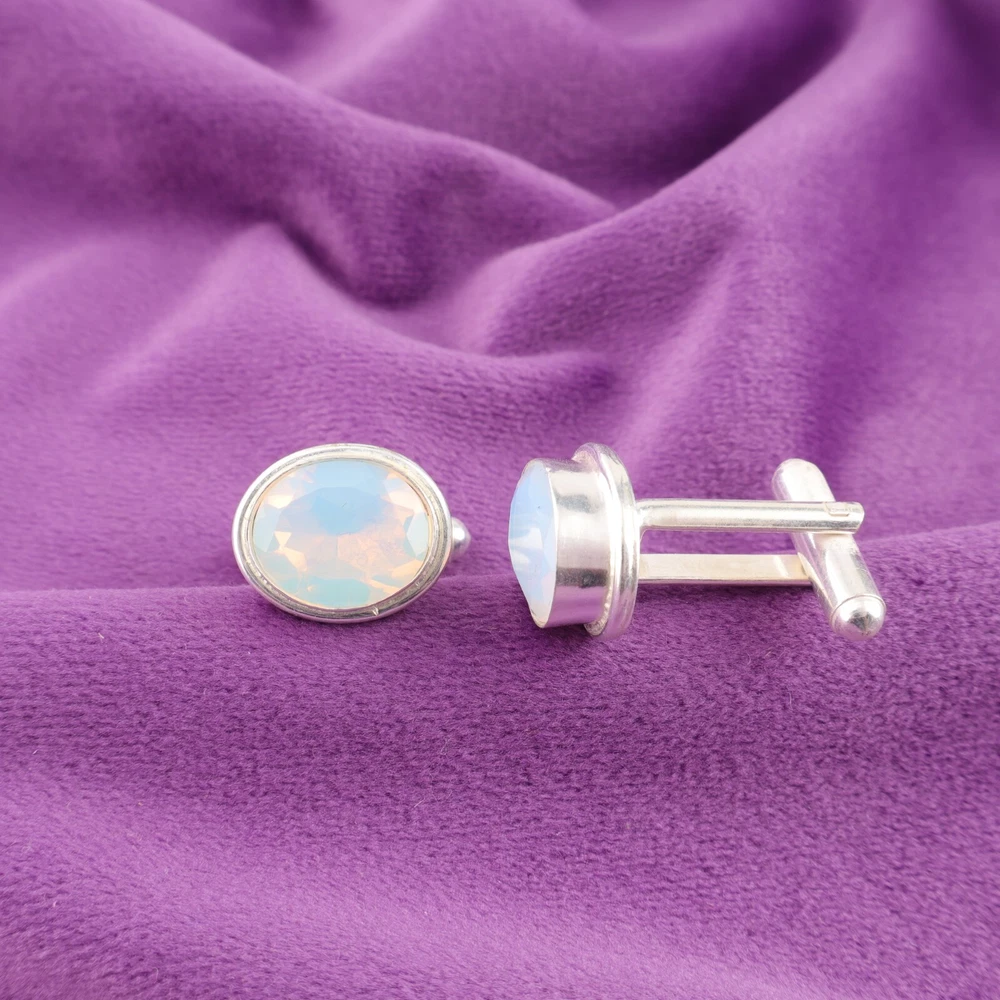 925 Sterling Silver Natural Milky Opal White Boyfriends Gift Designer Cufflinks