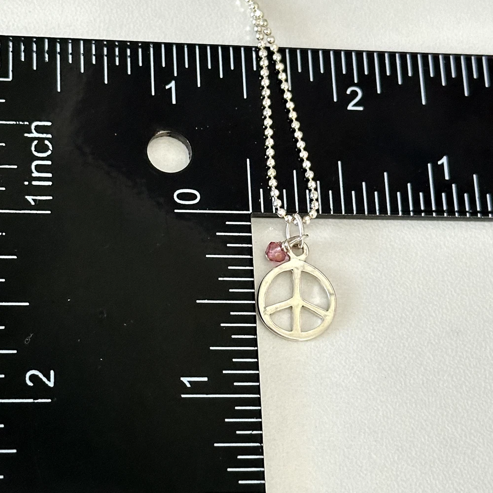 925 Sterling Silver Peace Sign Pink Crystal Pendant Bead Ball Chain Necklace Chain length: 16" Weight: 2.4 grams Signed: 925 Very good condition. - Fast shipping, I ship the same or next business day! I also combine shipping. - Thank you so much for shopping with me and please check out my other jewelry listings, I post new pieces daily!