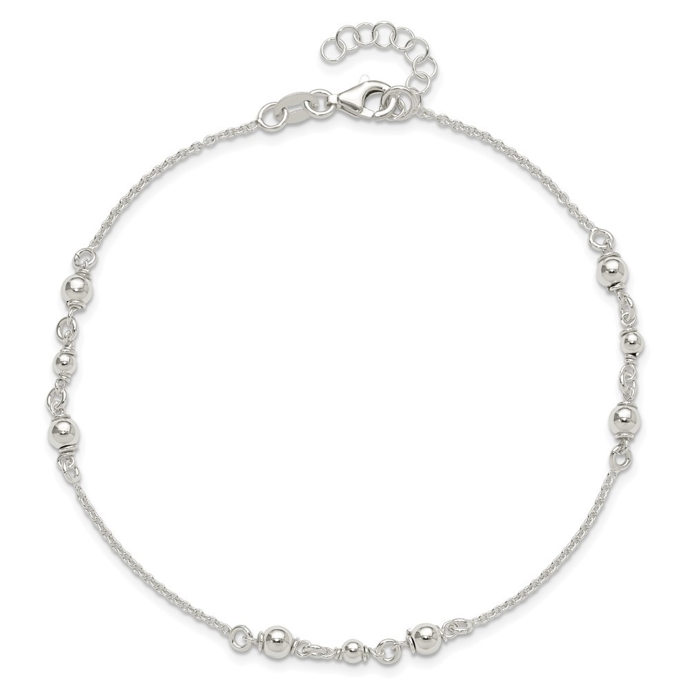 $ 40.13925 Sterling Silver Polished Flower Anklet 9" w/1in ext. 2.62gm