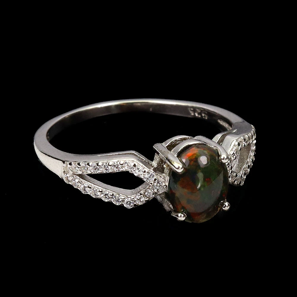 925 Sterling Silver Ring Oval Black Opal 8x6mm Natural Gemstone jewelry Size 9