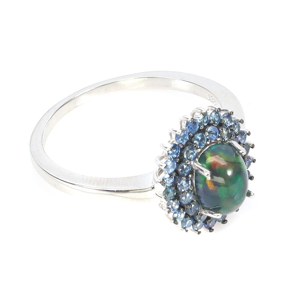 Plate: 2-Tone Black Rhodium & White 14k Gold Country of Origin: Ethiopia UPC: Does not apply Color: Hot Rainbow Luster Cut Grade: Excellent gtin13: Does not apply Brand: Egemdiamond Country/Region of Manufacture: Thailand MPN: Does not apply Diamond Color Grade: D Base Metal: Fine Silver Theme: Fashion & Costumes Material: Gemstone Metal: 925 Sterling Silver Total Carat Weight: 2.95 gram Product ID: RG2409030240 Main Stone Shape: Oval Cabochon Main Stone Color: Hot Rainbow Luster Secondary Stone: Sapphire Diamond Cut Main Stone Treatment: Clarity Enhanced Style: Cocktail Metal Purity: 925 parts per 1000 Type: Ring Ring Size: 7 Hardness: 5 Occasion: Birthday Luster: Amazing Main Stone: Black Opal Number of Gemstones: 1 Main Stone Creation: Natural Setting Style: Cluster Number of Diamonds: 1