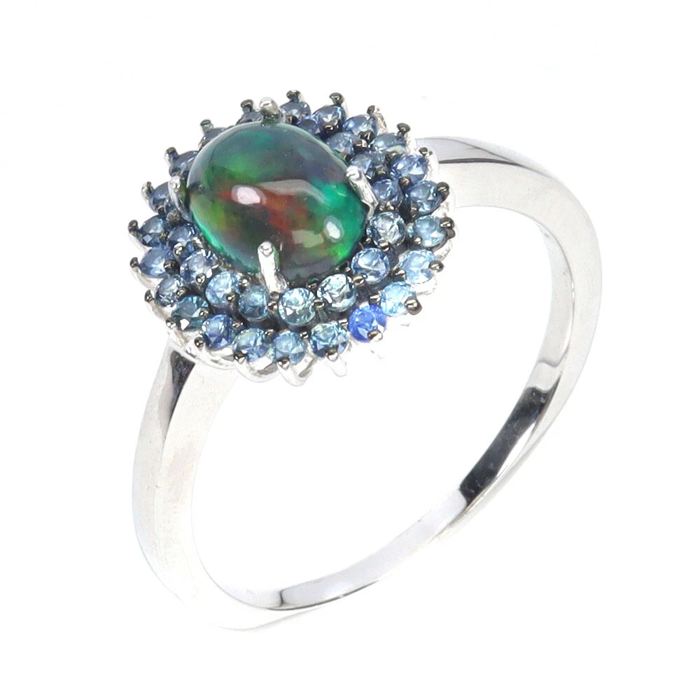 925 Sterling Silver Ring Oval Black Opal 8x6mm Sapphire Gemstone jewelry 7