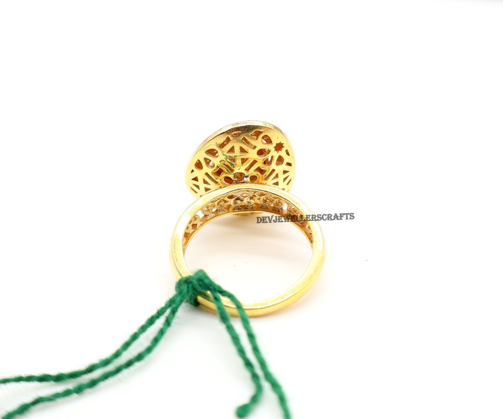 Shape: Oval Colored Diamond Intensity: Fancy Base Metal: Silver Material: Stone Era: Art Deco (1915-1935) Ring Size: All Size Available Personalize: Yes Color: Gold Style: Cocktail Antique: Yes Main Stone Color: White/Colorless Diamond Color Grade: I Country of Origin: India Main Stone Creation: Natural Main Stone Shape: Rose Cut Seller Warranty: Yes Theme: Beauty, Fashion & Costumes, Love, Luck Sizable: Yes Wholesale: Yes Brand: Victorian Vintage: Yes Country/Region of Manufacture: India Diamond Clarity Grade: Included (I1) Metal: Sterling Silver Secondary Stone: Pave Diamond Occasion: Anniversary, Birthday, Engagement, Wedding Type: Ring Customized: Yes Seller Notes: “925 Sterling Silver Rose Cut Polki & Pave Diamond Gold Plated Cocktail Ring.” Main Stone: Polki Handmade: Yes Cut Grade: Excellent Setting Style: Bezel Signed: Yes Main Stone Treatment: Not Enhanced Gemstone Clarity Grade: Eye Clean Metal Purity: 925