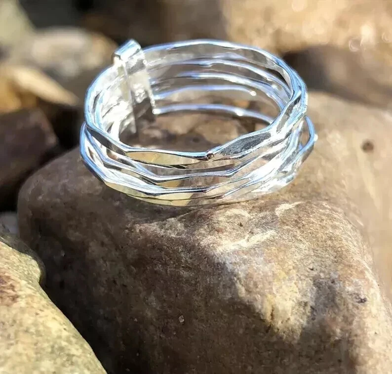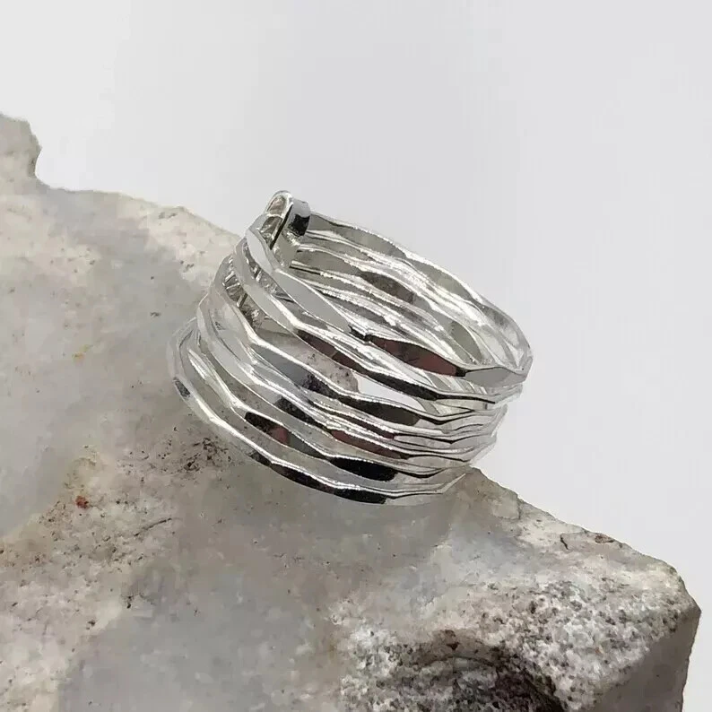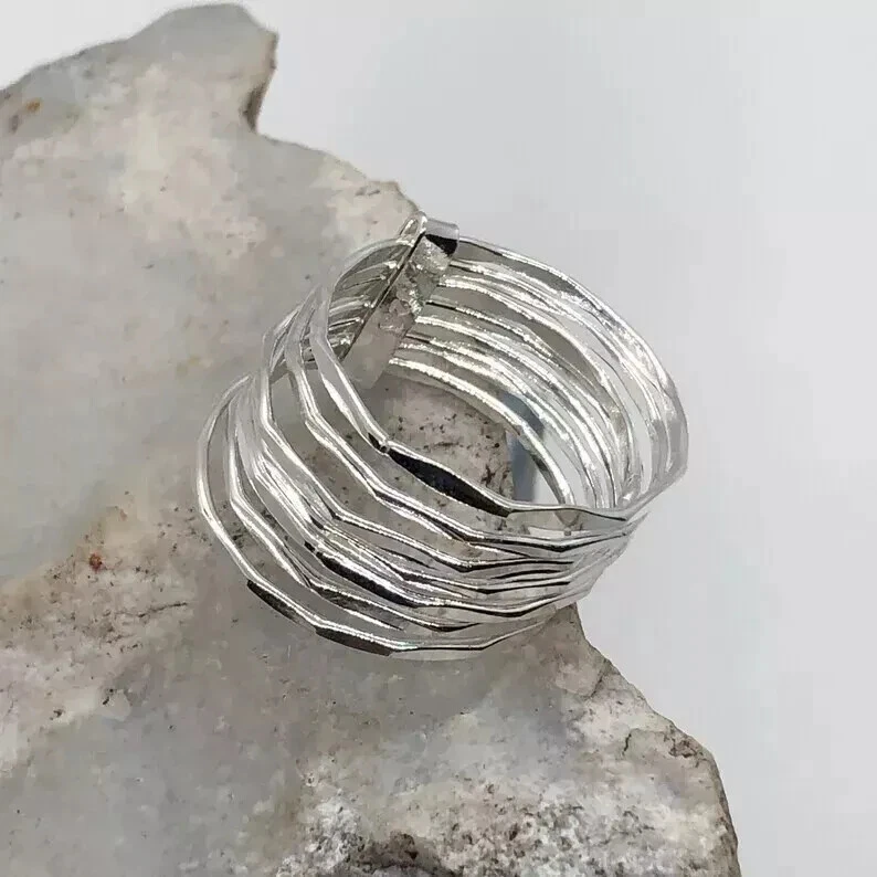 Absolutely love this ring! The craftsmanship is stunning—solid sterling silver with a unique seven-band design that makes a bold statement. It fits perfectly and feels high-quality. Shipping was fast, and the seller was great with communication. Highly recommend for anyone looking for a stylish, handmade piece!