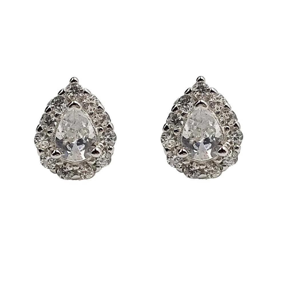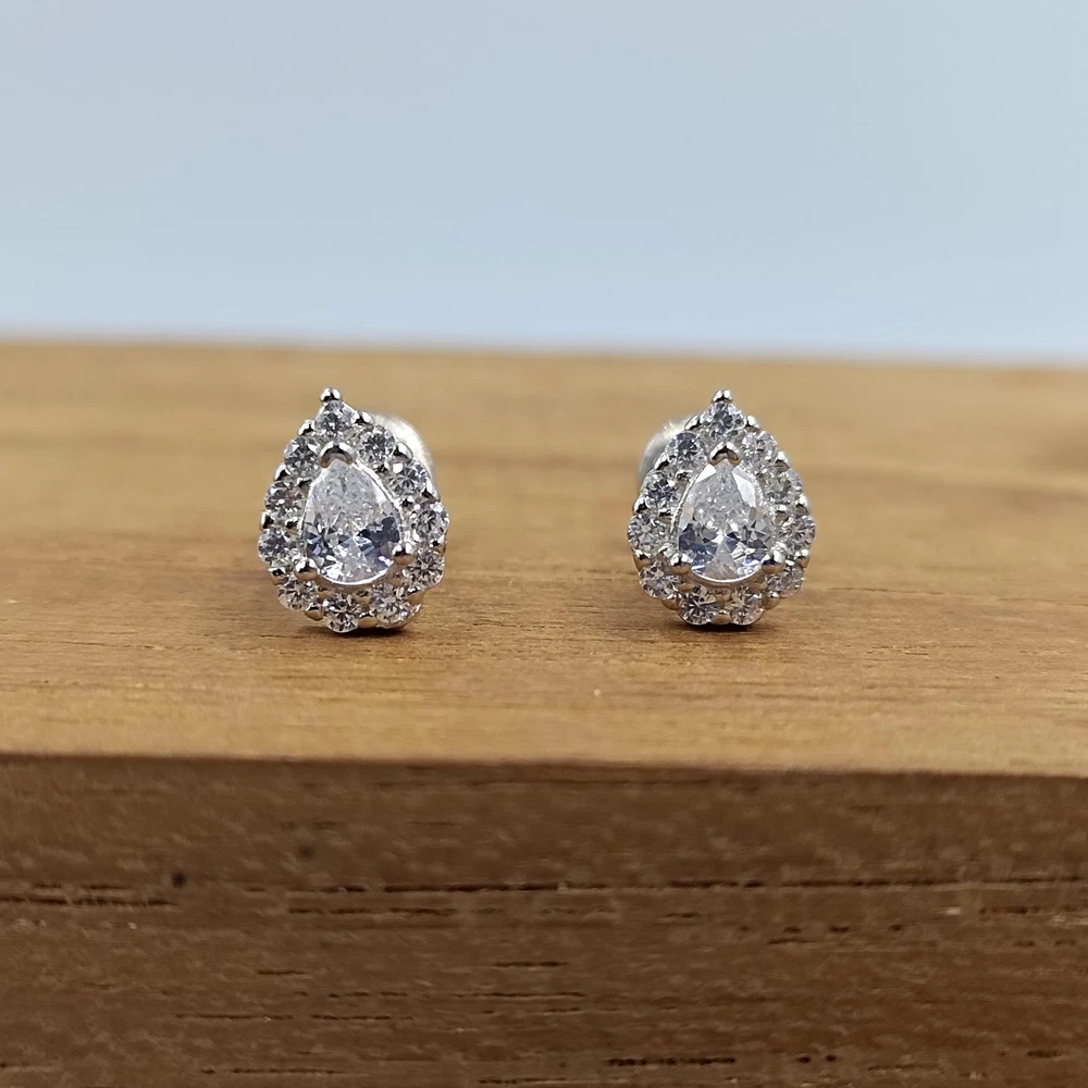 925 Sterling Silver Sparkle Pear Shape Studs Wedding Bridal Studs CZ Gift Studs