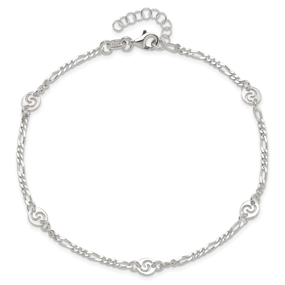 925 Sterling Silver 2.85mm Figaro Chain Anklet 10" 3.85gm