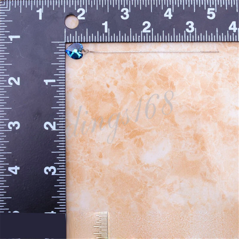 This listing is for one pair of 925 sterling silver tarnish-free blue crystal heart long threader earrings. It is tarnish-resistant and hypoallergenic. It will not flake off, tarnish or discolor. You can do your daily work without removing it. It is covered under our 60-day 100% money-back guarantee. *** Free gift box included. Product ID: X1260 Metal: 925 Sterling Silver Color: White Product Dimension: Heart Diameter: 9 mm (0.35 inch) Thread: 64 mm (2.5 inch); Total Length: 3.5 inch/89 mm Weight: 1.6 gram Quantity: One Pair of Earrings Note: *** Please always refer to the description for the measurement of the product. Please do not judge the size based on the picture on your screen. The product may look larger or smaller based on your screen size. 100% Satisfaction Guarantee We offer 100% satisfaction guarantee for all products we sell. If you are not 100% satisfied, you may always return the product for full refund or exchange within 60 days of purchase. Shipping & Payment All orders are shipped through USPS(Postal Office) from our warehouse in California, USA within 24 hours after your payment reaches us. For International buyers: We ship to all countries. We pay all shipping charge in full before your package is shipped. For international buyers, you may be collected an fee when the package is delivered. It's an importing tax that your government charges to protect your domestic business and job opportunities. It's the buyer's responsibility to pay the tax. Contact us The best way to contact us is through eBay message by using eBay's "ask a question" link.