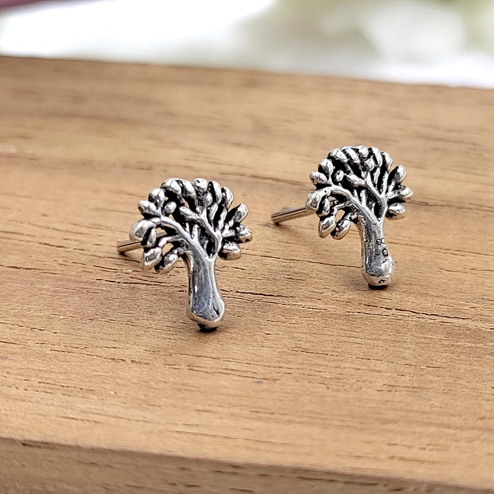 925 Sterling Silver Tree of Life Earrings Family Tree Jewelry Boho Stud Earring