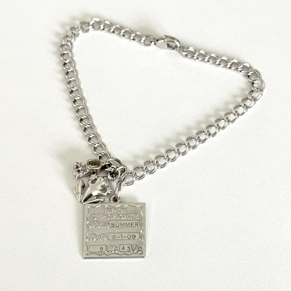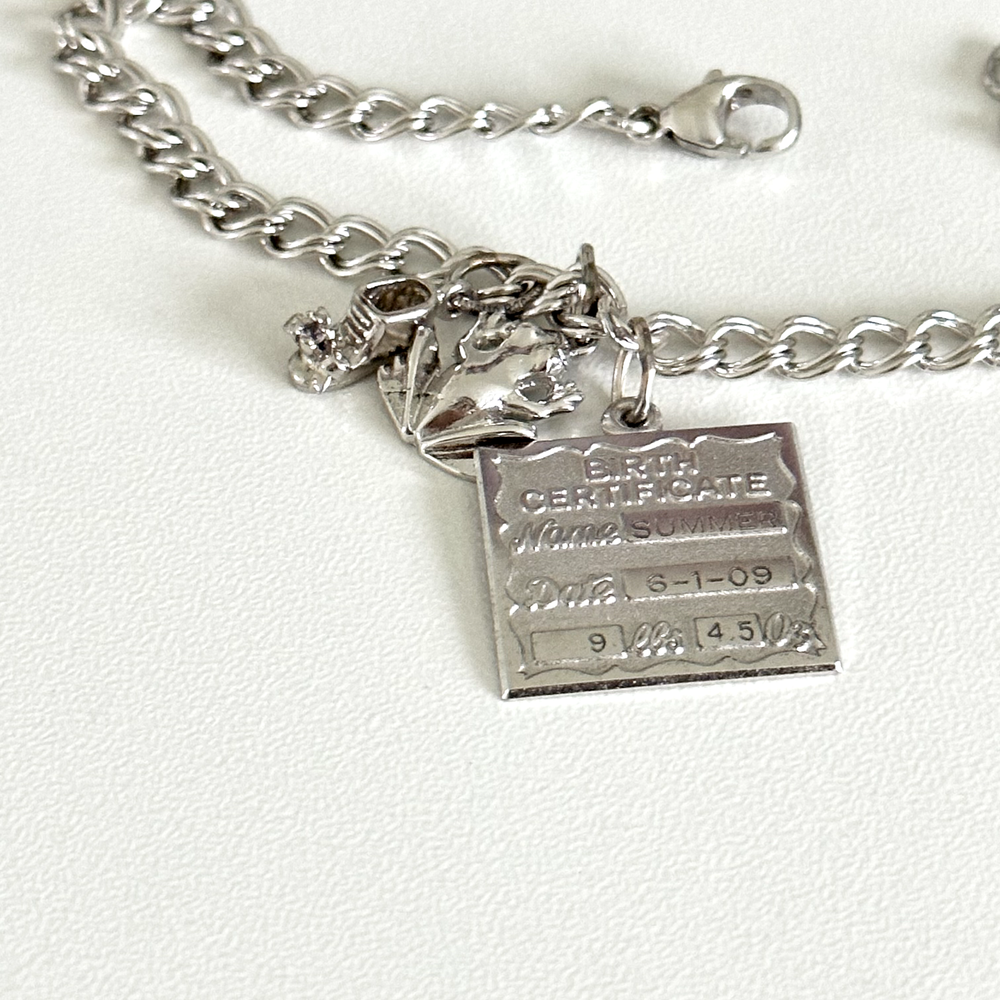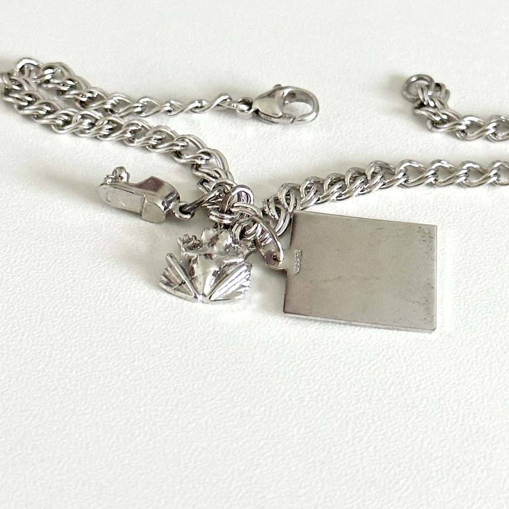 925 Sterling Silver Vintage 3 Charms Curb Chain Link Bracelet Lovely vintage charm bracelet features a frog, shoe, and birth certificate charm all on a curb link bracelet, all set in sterling silver. Length: 7.75" Width: 5mm Weight: 10.7 grams Signed for sterling silver. Very good vintage condition. - Fast shipping, I ship the same or next business day! I also combine shipping. - Thank you so much for shopping with me and please check out my other jewelry listings, I post new pieces daily !