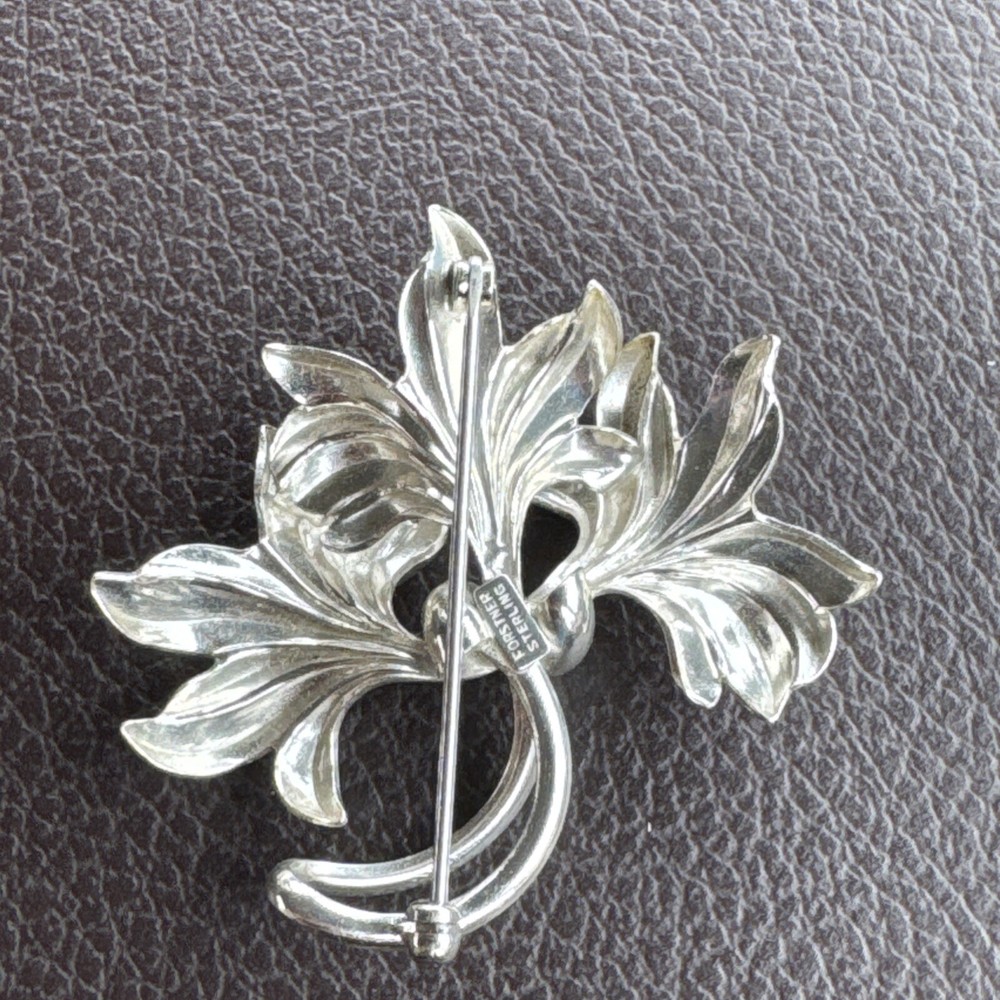 This vintage brooch by Forstner is a beautiful addition to any jewelry collection. The silver flower design is intricate and timeless, making it perfect for any occasion. The brooch is signed and features a 925 metal purity, ensuring its quality and value. The nickel-free feature adds an extra layer of comfort for those with sensitive skin. This unisex brooch is handmade and perfect for those looking for a unique piece of art-themed jewelry. Whether it's for an anniversary, birthday, or just to treat yourself, this Forstner Floral Pin Brooch is a must-have.
