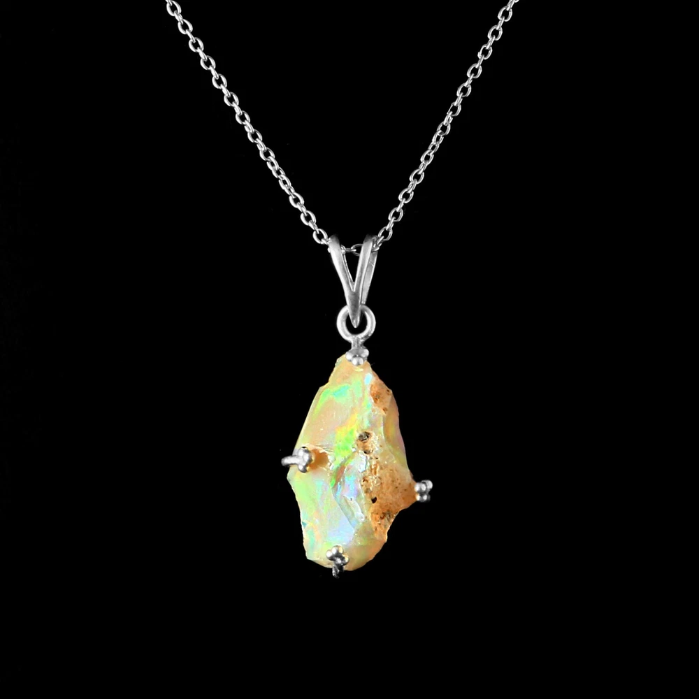 weight: 17 cts Necklace Length: 18 in Main Stone Shape: Oval Base Metal: Silver Occasion: Anniversary, Birthday, Christening, Christmas, Engagement Vintage: Yes Metal Purity: 925 Main Stone Creation: Natural Wholesale: Yes Signed: Yes Number of Gemstones: 1 Closure: Lobster Secondary Stone: Opal Features: Adjustable Color: White Brand: Sterling Main Stone: Opal Handmade: Yes Gemstone Clarity Grade: Heavily Included Type: Necklace Chain Type: Ball/Bead Setting Style: Bezel Main Stone Treatment: Not Enhanced Main Stone Color: Fire Pendant Shape: Oval Pendant/Locket Type: Tassel Material: Gemstone Theme: Healing, Nature Country of Origin: India Country/Region of Manufacture: Ethiopia Metal: Silver Size: 22-12 mm Style: Pendant Cut Grade: Excellent