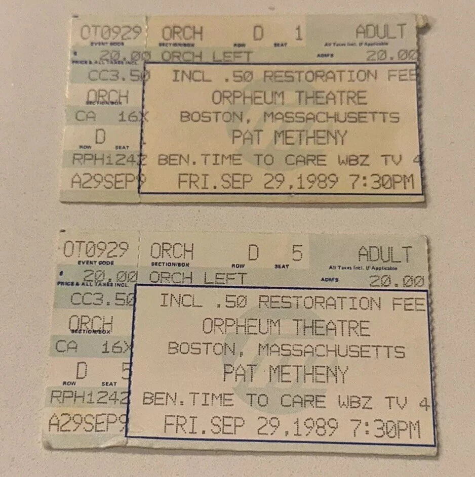 9/29/89 Pat Metheny Jazz Band Composer Concert Music Orpheum Boston Ticket Stub