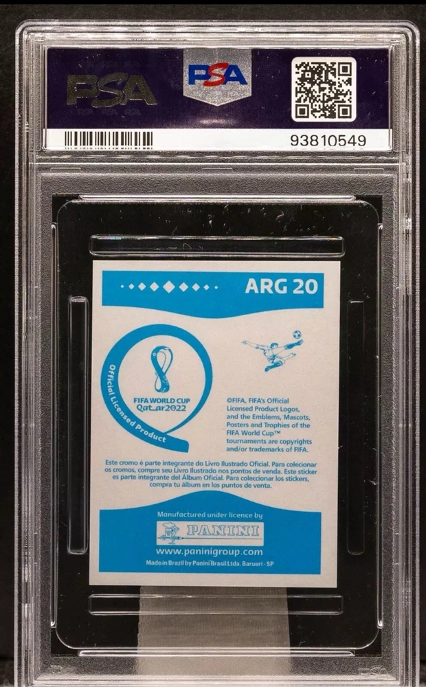 93810549 LIONEL MESSI 2022 Panini FIFA World Cup Stickers Blue Back PSA 10