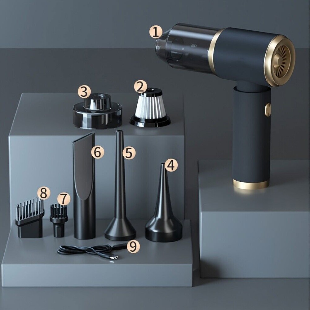 Descriptions: 【WIRELESS HANDHELD CAR VACUUM CLEANER STRONG SUCTION】 【2-IN-1 MULTI-FUNCTIONAL MINI CAR VACUUM CLEANER】 【9500PA POWERFUL SUCTION CAR VACUUM】 【WASHABLE REUSABLE FILTER】 【CORDLESS CAR VACUUM CLEANER PREMIUM SERVICE 】 Specification: Colour: Black Noise: ≤84dB Working temperature: - 20℃~+50℃ Rated voltage: DC 8.4V Rated power: 120W Rated speed: 35500 (r/min) Vacuum suction power: about 95000 Pa Dust cup capacity: 0.5L Charging method: USB charging Battery used: Built-in rechargeable lithium battery Battery capacity: 2000 mAh Charging time: about 4h Battery life: about 45 minutes USB cable length: about 1m Product size: 20*19*6.5cm Product net weight: 380g Package List: 1*vacuum cleaner 5*Air extraction nozzle 1*Filter (included with product) 1*USB charger 1*Instruction manual 95000Pa Cordless Handheld Vacuum Cleaner Portable Mini Car Auto Home Wireless US Descriptions: 【 WIRELESS HANDHELD CAR VACUUM CLEANER STRONG SUCTION】 This cordless handheld vacuum cleaner lightweight and small,with ergonomic handles that can be moved anywhere with one hand and easily stored in drawers,cars,lockers or carry-on luggage,it can help you effortlessly clean corners and dark,narrow areas,such as cleaning your car, kitchen,office, stairs or hard-to-reach corners 【 2-IN-1 MULTI-FUNCTIONAL MINI CAR VACUUM CLEANER】 Mini vacuum cleaner has two functions: vacuuming,blowing,expansion and can use different cleaning accessories according to different cleaning needs to meet a variety of scenarios. The powerful suction allows it to effortlessly suck dust and debris from car seats,carpets and crevices and at the other end is a hair dryer that easily blows away dust from keyboards,camera lenses and pianos, as well as optional accessories to inflate swim rings . 【 9500PA POWERFUL SUCTION CAR VACUUM】 This cordless handheld vacuum cleaner has 9500Pa suction, built-in 2000mAh battery,fast charging within 2 hours (red light when charging, green light when full),can run for 15-20 minutes (depending on the cleaning load, running time may vary).With the Type-C charging cable,the vacuum cleaner can be charged anywhere in the car or at home using a USB slot. 【 WASHABLE REUSABLE FILTER】 This hand-held cordless vacuum has a high efficiency particulate air compatible filter that can be opened immediately to empty waste or rotated to quickly remove waste.The filter has good dust absorption capacity and screening capacity and the removal rate is as high as 99.99%.Regular cleaning filters debris more effectively,protects high-speed motors and extends their availability and environmental protectio 【 CORDLESS CAR VACUUM CLEANER PREMIUM SERVICE 】 Our portable car vacuum are suitable for people of any age and gender. On Christmas, Thanksgiving,birthdays,Father's Day, Mother's Day,this is a thoughtful and ideal for family or friends who have pets or cars.If you have any questions about this mini vacuum cleaner,We will get back to you within 24 hours. Specification: Colour: Black Noise: ≤84dB Working temperature: - 20℃~+50℃ Rated voltage: DC 7.4V Rated power: 120W Rated speed: 35500 (r/min) Vacuum suction power: about 95000 Pa Dust cup capacity: 0.5L Charging method: USB charging Battery used: Built-in rechargeable lithium battery Battery capacity: 2*2000 mAh Charging time: about 4h Battery life: about 45 minutes USB cable length: about 1m Product size: 20*19*6.5cm Product net weight: 380g Package List: 1*vacuum cleaner 5 *Air extraction nozzle 1*Filter (included with product) 1*USB charger 1*Instruction manual Payment Shipping Return Contact us About us Payment 1.Paypal, Credit Card, G Pay etc, many payment way is accepted. 2.Please be sure your shipping address is correct before make a payment. Shipping 1.We will ship out the item within 1-3 business days after comfirming the payment, appreciate your patience. 2.If the items are broken on the way( we will check the orders clearly before we sent them ),please contact us in 3 days you received it. We will send you a new one or refund your payment. Return 1.We stand behind every buyer.Items can be returned for exchange or refund within 30 days. 2.Please contact us when you have any confusion of our item, we will solve the trouble for you as soon as possible. Contact us 1.This is professional Seller.We will reply your message within 24 hours. 2.Please contact us whenever you have any question about the item. We will deal with it as soon as possible. 3. If you are unhappy with the item or our service,please Contact Us before leave feedback,just give me a chance,thank you! About us 1. Unless specified otherwise, all our products are IN STOCK and are shipped from Local warehouse - Not Overseas! 2. We provide a 30 day Satisfaction Guarantee or your money back (provided items are in the same new and resaleable condition.) 3. We have a PayPal Verified Business Account, please buy with Confidence! 4. Every item will be tesrted before send.We know our products well and if we don't have the answers we will do our best to find them for you! 5. Our friendly team look forward to serving you! Your satisfaction is our No.1 Priority We will do our best to satisfacy you.