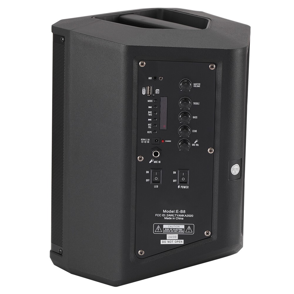 9500W 8'' Tiltable Design Portable Bluetooth Party Speaker- USB/SD/AUX/EQ/TWS/FM Feature: đăTiltable Design for Optimal SoundăThis speaker features a unique tiltable design that allows you to adjust the angle for improved acoustics and a personalized listening experience. Tailor the sound to your environment and listening preferences for optimal enjoyment. đăParty Mode with LED Ring LightăGet the party started with the sound-activated LED ring light. This exciting visual feature adds an extra layer of fun to your audio experience, making every event memorable. đăCustomizable Audio SettingsăTake control of your sound with adjustable volume, treble, and bass controls. The dual-channel soundboard and multiple input optionsâincluding Bluetooth, USB, TF, FM, and auxiliaryâprovide versatility. Plus, the microphone jack comes with volume and echo controls, allowing you to fine-tune your audio to your exact preferences. đăWavesync TechnologyăBoost your audio experience by pairing two SP-880RBT speakers. This feature enhances the power and quality of your sound output, creating an immersive audio environment. đăLong-lasting BatteryăWith a 3000mAh 7.4V battery, this speaker offers extended playback time. Enjoy your favorite tunes for longer without worrying about recharging. Specification: - Material:ABS - Color:Black - Bluetooth Model:QFX (E-B8) - Manual Language: English - Music Power:9500W - Speaker: 8 inch *1 - Function Modes: Bluetooth Mode, USB, TF, FM, AUX Mode - Sound Hole LED Ring Light with Dedicated Switch - Battery Capacity: 3000Mah 7.4V - Specific Uses: parties, outdoor events, home entertainment, music listening sessions Package: - 8-inch Speaker with Tilt Function*1 - Remote Control*1 - Microphone*3 - AC Adaptor*1 Delivery details Payment Terms of sales Feedback Contact us Delivery details 1. BUSINESS DAY MONDAY- FRIDAY FAST SHIPPING FROM USA. 2. All orders and payments received before 4PM EST (1PM PST) will be shipped the same business day. 3. No shipping on Saturday,Sunday or USA Public Holidays 4. No responsibility for any custom duty Payment We accept payment by PayPal only. Terms of sales 1. We offer a 60 day money back guarantee or exchange. 2. Buyer pays return shipping and we pay replacement shipping. 3. If you want to initiate a return,please contact us to get a returning address before sending the item back. Feedback 1. We strive to provide the best products and services. 2. Your positive feedback 5 stars DSR help us do better. 3. If anything about your transaction did not meet expectations, please CONTACT US and give us the opportunity to make things right. We are always here to help. Contact us Please do not hesitate to CONTACT US . You can message 24/7 on eBay for all questions and inquiries. We will get back to you within one business days at the latest from Monday- Friday.