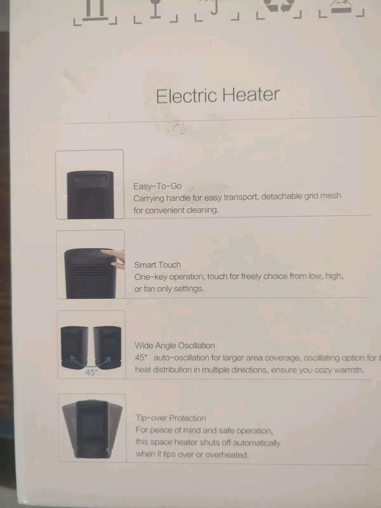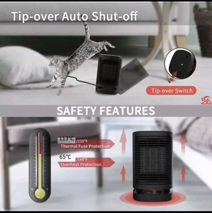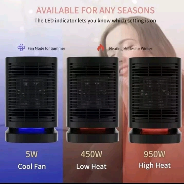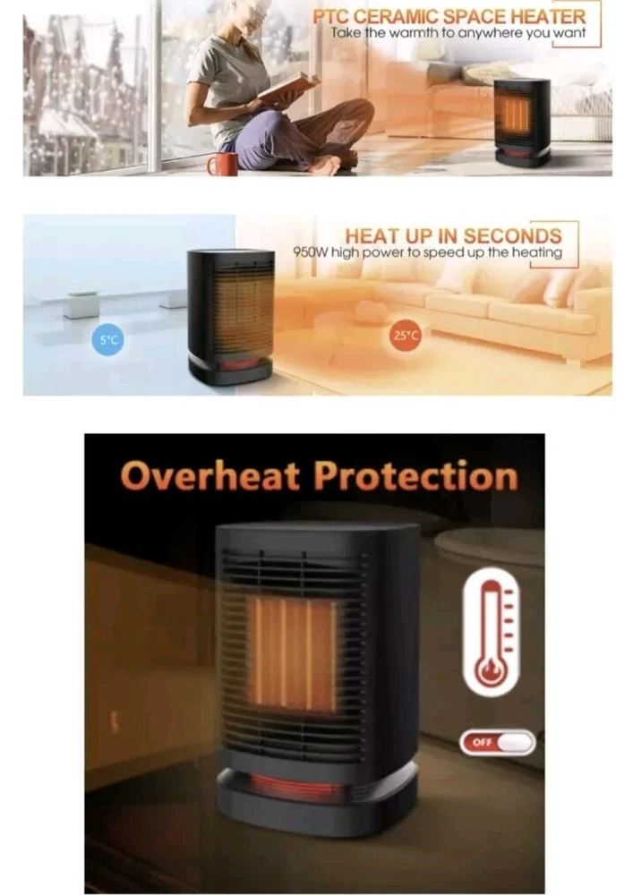 Ship to FedEx 2day Air ,arriving in 2 business days This portable electric space heater is the perfect solution for providing warmth in any room. With a powerful 950W heating system and three heat settings, this heater warms up quickly and provides consistent heat throughout the room. The oscillation feature ensures that the heat is distributed evenly, and the ceramic heating element ensures that the air is clean and healthy to breathe. In addition to its powerful heating capabilities, this heater is also energy-efficient with an Energy Star rating and an Energy Efficiency Ratio (EER) of Yes. It features a touch control style and comes in a sleek black color, making it a stylish addition to any home decor. This heater is compact, with dimensions of 5.3*5.3*8.2 inches, and can be mounted on the floor, desk/tabletop, or free stood.