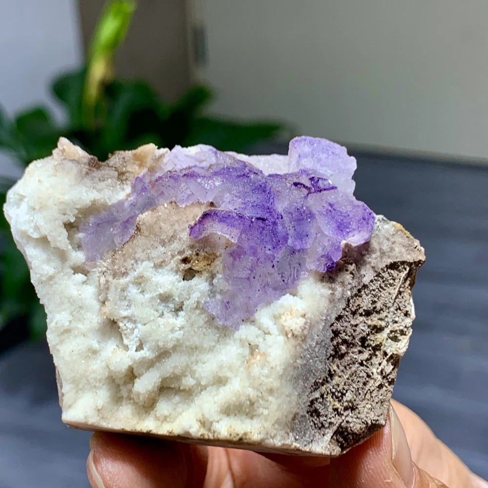 109G Natural Purple QR Code Fluorite Cluster Crystal Mineral Specimen from Guizhou